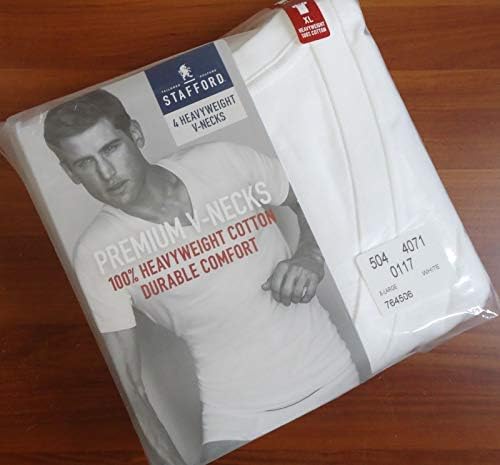 ستافورد 4 قطع. تي شيرت ثقيل الوزن برقبة على شكل حرف V (S) أبيض