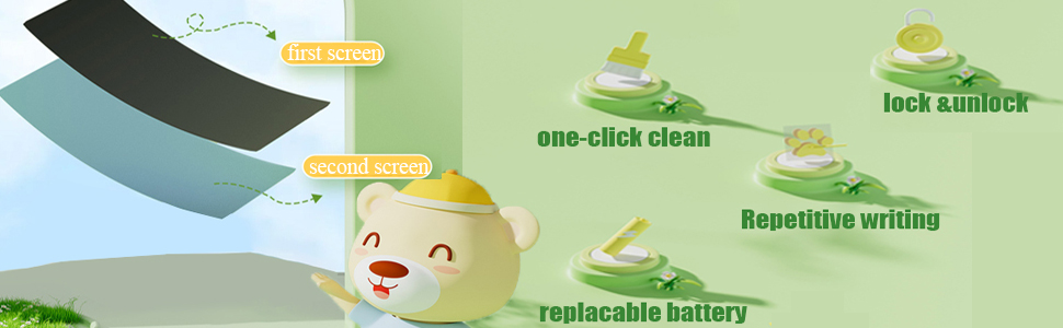 "مسح الأنف": اضغط على زر "مسح"، وسيستغرق تفريغ محتوى الشاشة ثانية واحدة فقط. مفتاح القفل الخلفي: يمكن أيضًا استخدام مفتاح القفل لحفظ المحتوى عندما تريد لوحة الكتابة هذه ككتاب رسائل.