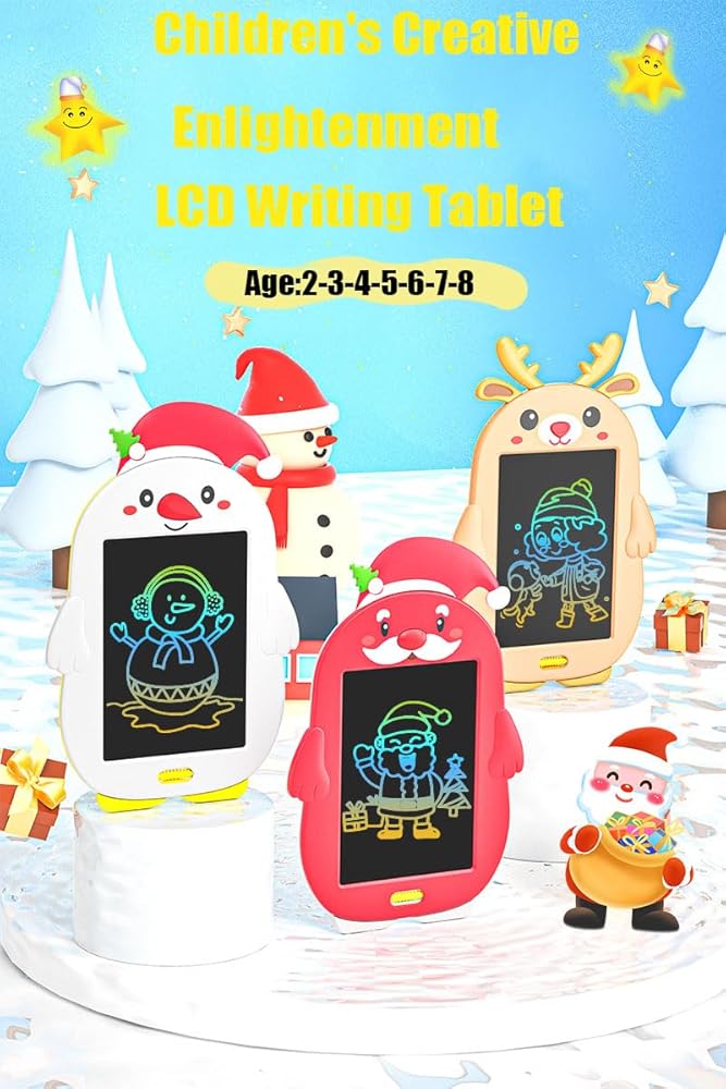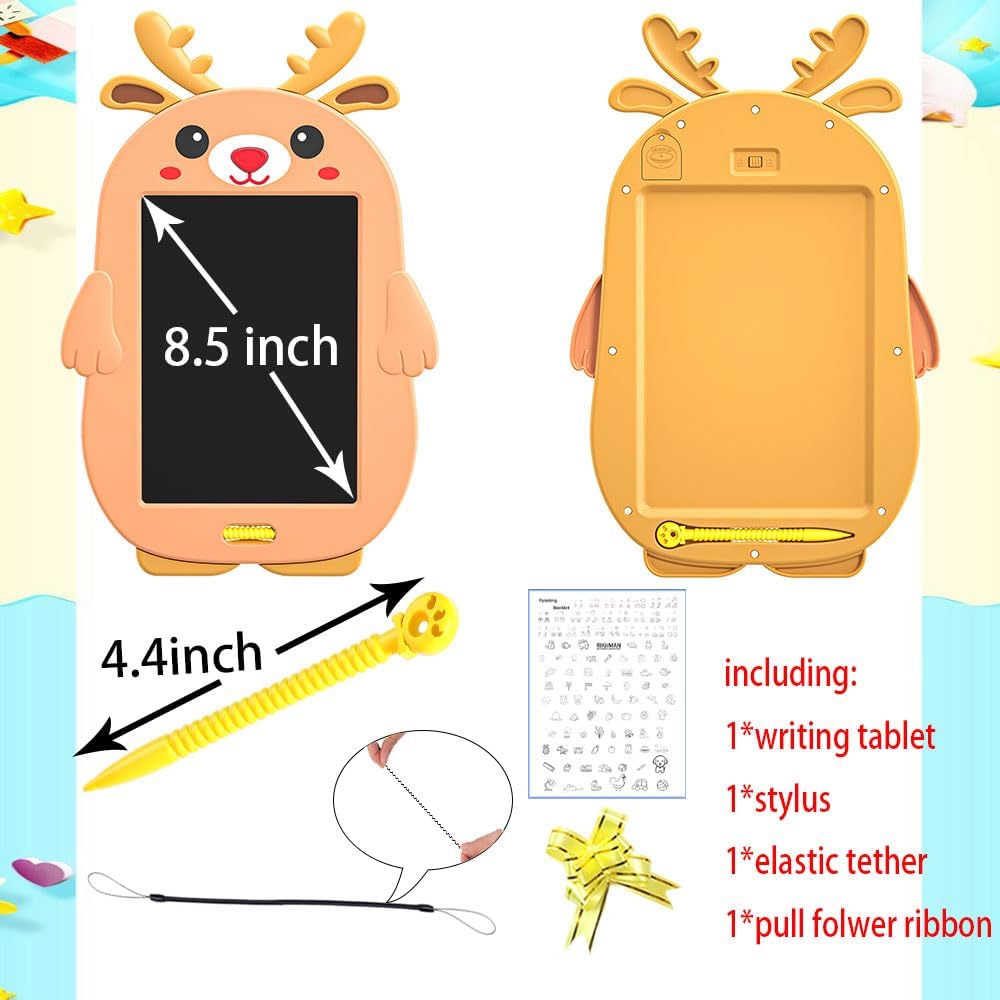 تابلت كتابة للأطفال مقاس 8.5 بوصة، لوحة رسم إلكترونية تعليمية للأطفال، لوحة رسومات الشعار المبتكرة ذات الشاشة الملونة، لوحات رسومات الشعار المبتكرة والخربشة القابلة للمسح (أيل عيد الميلاد البني)