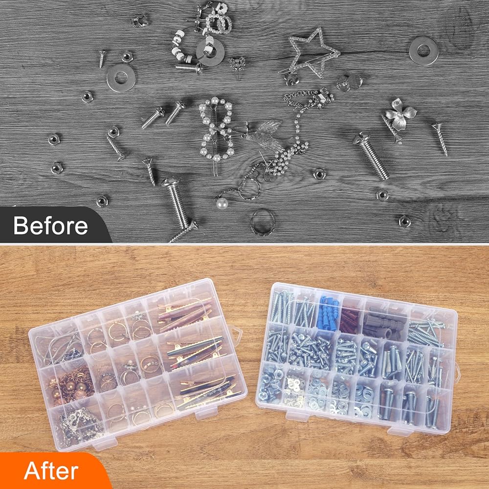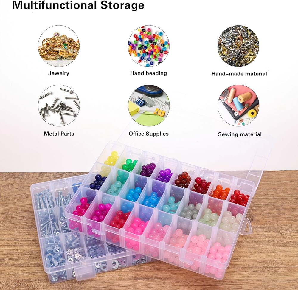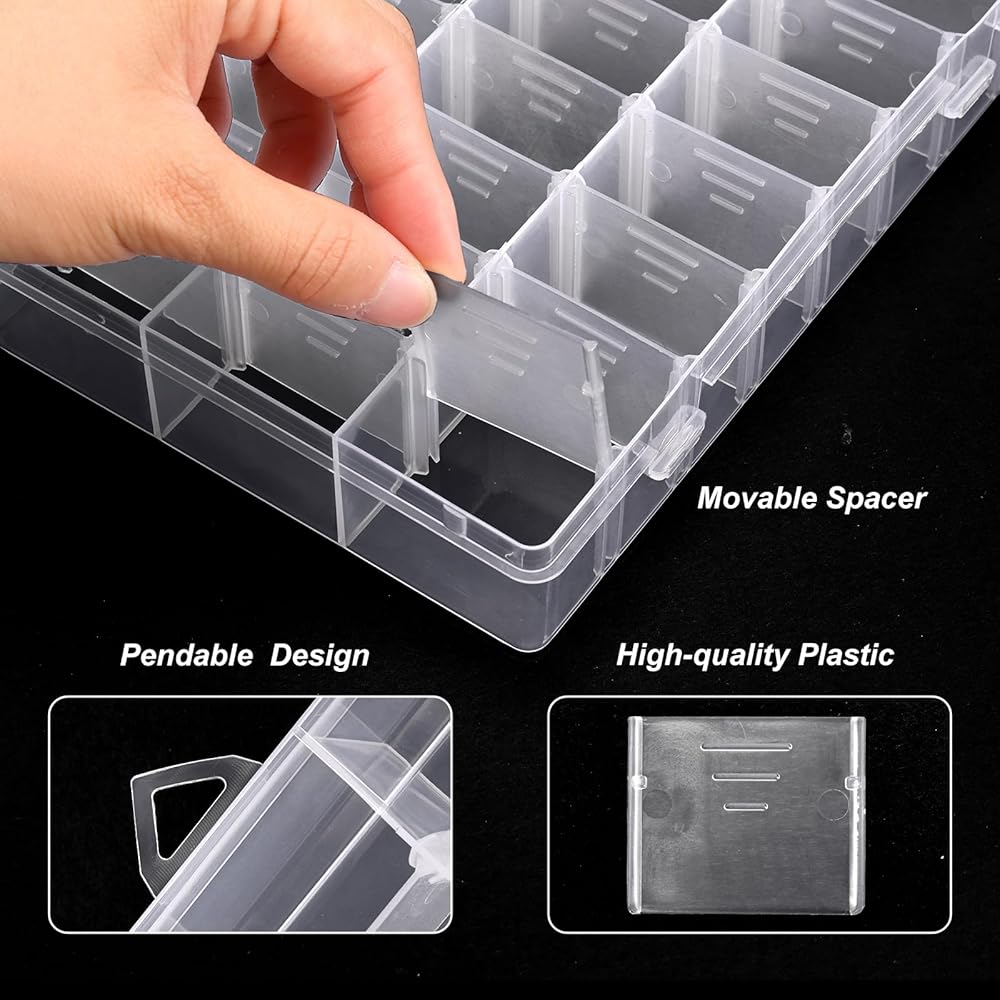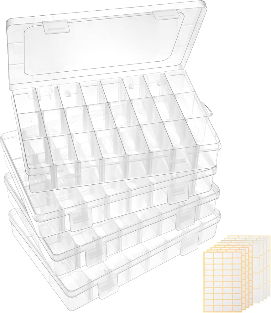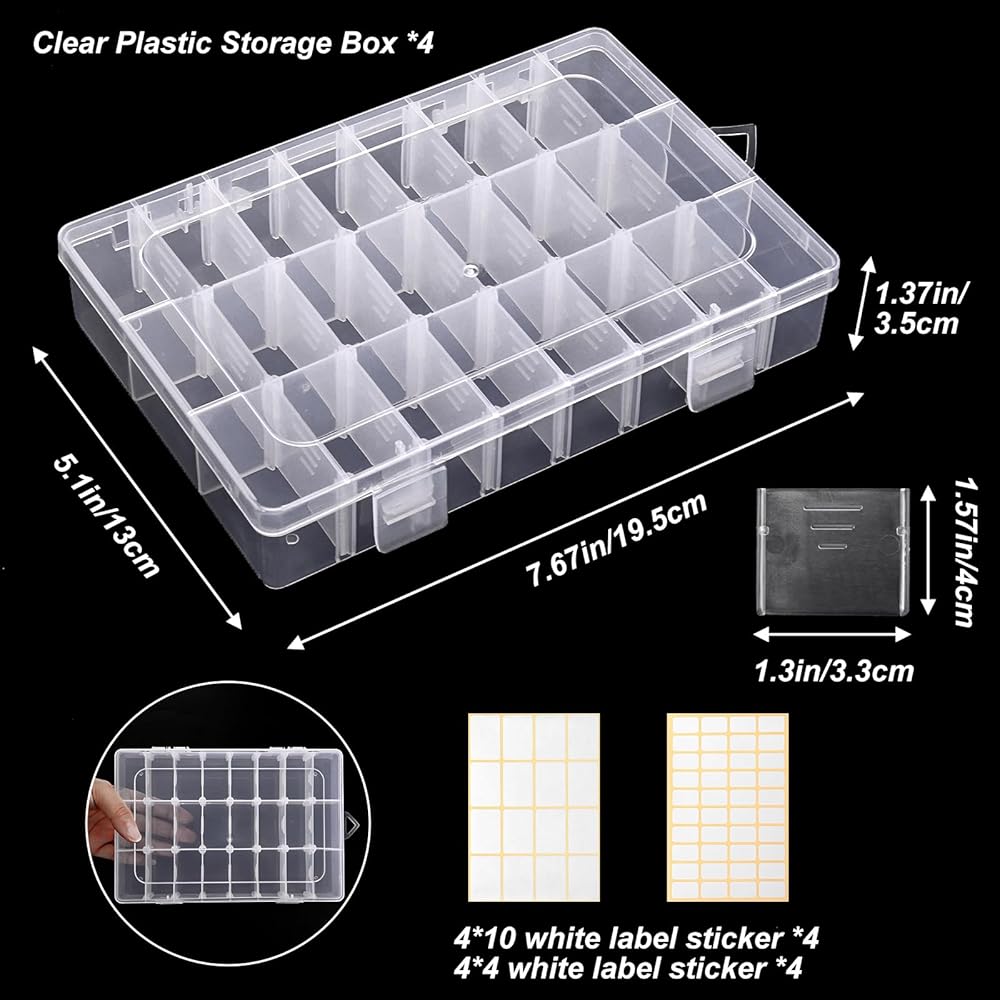 High quality materials: You will receive 4 packs of 24 grid small jewelry plastic containers and 8 stickers. These storage boxes are made of durable, transparent plastic that is not susceptible to deformation. The transparent box is clear at a glance, so you can easily and quickly find what you want in the box.