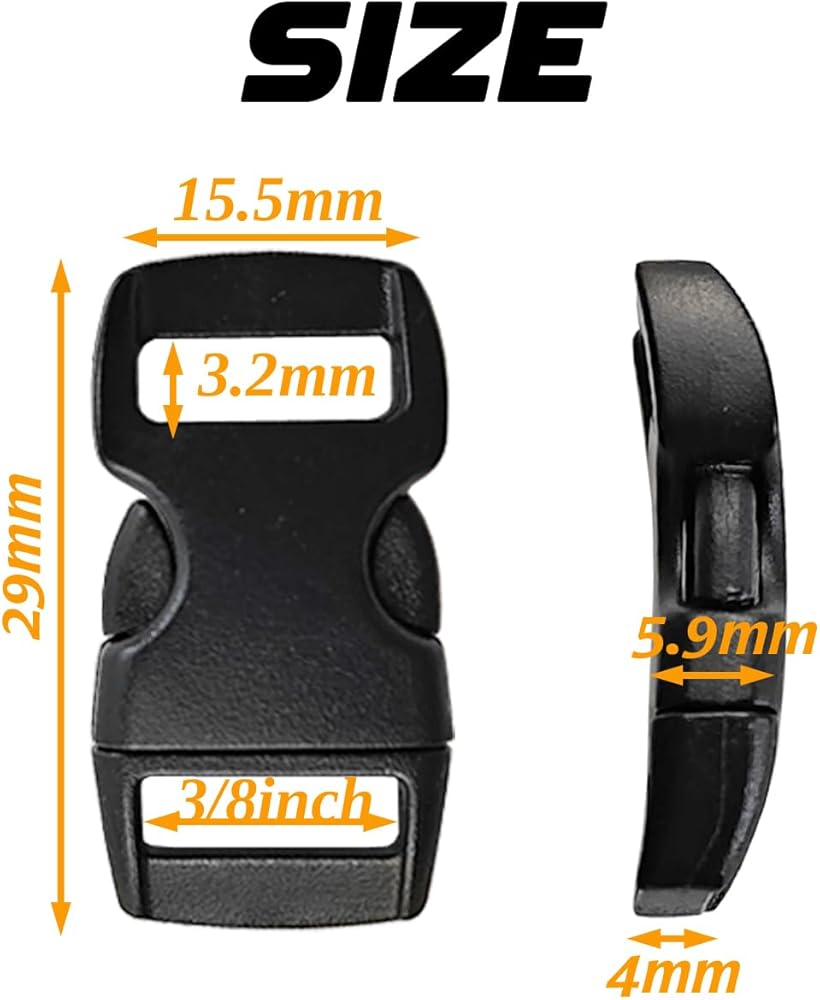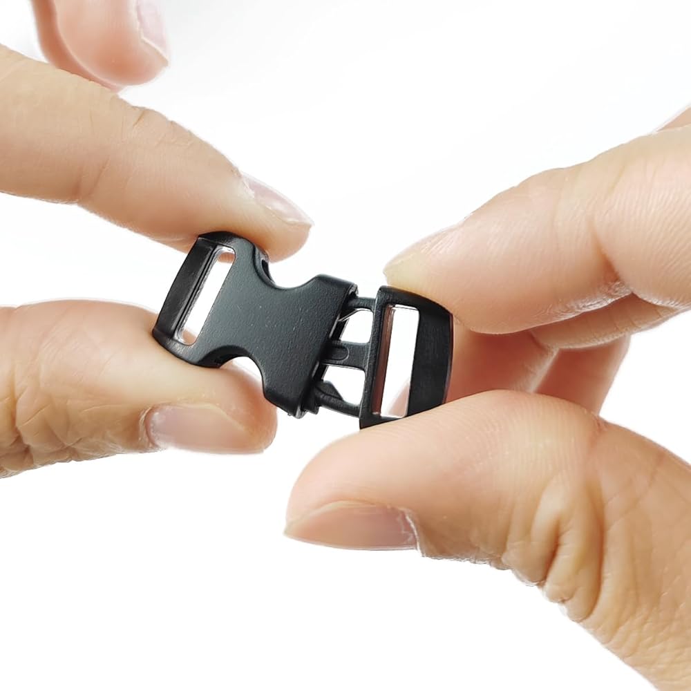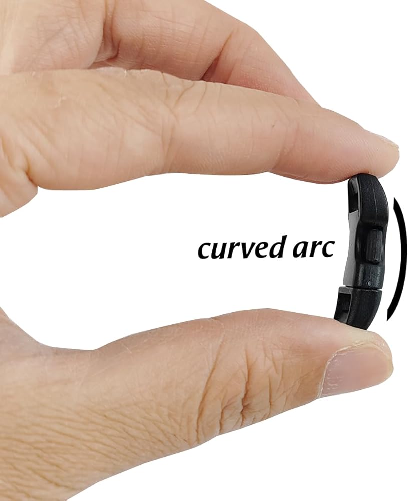 3/8-Inch plastic side release buckles is designed with a curved arc. Nice curve which can be perfectly matched with paracord bracelets.