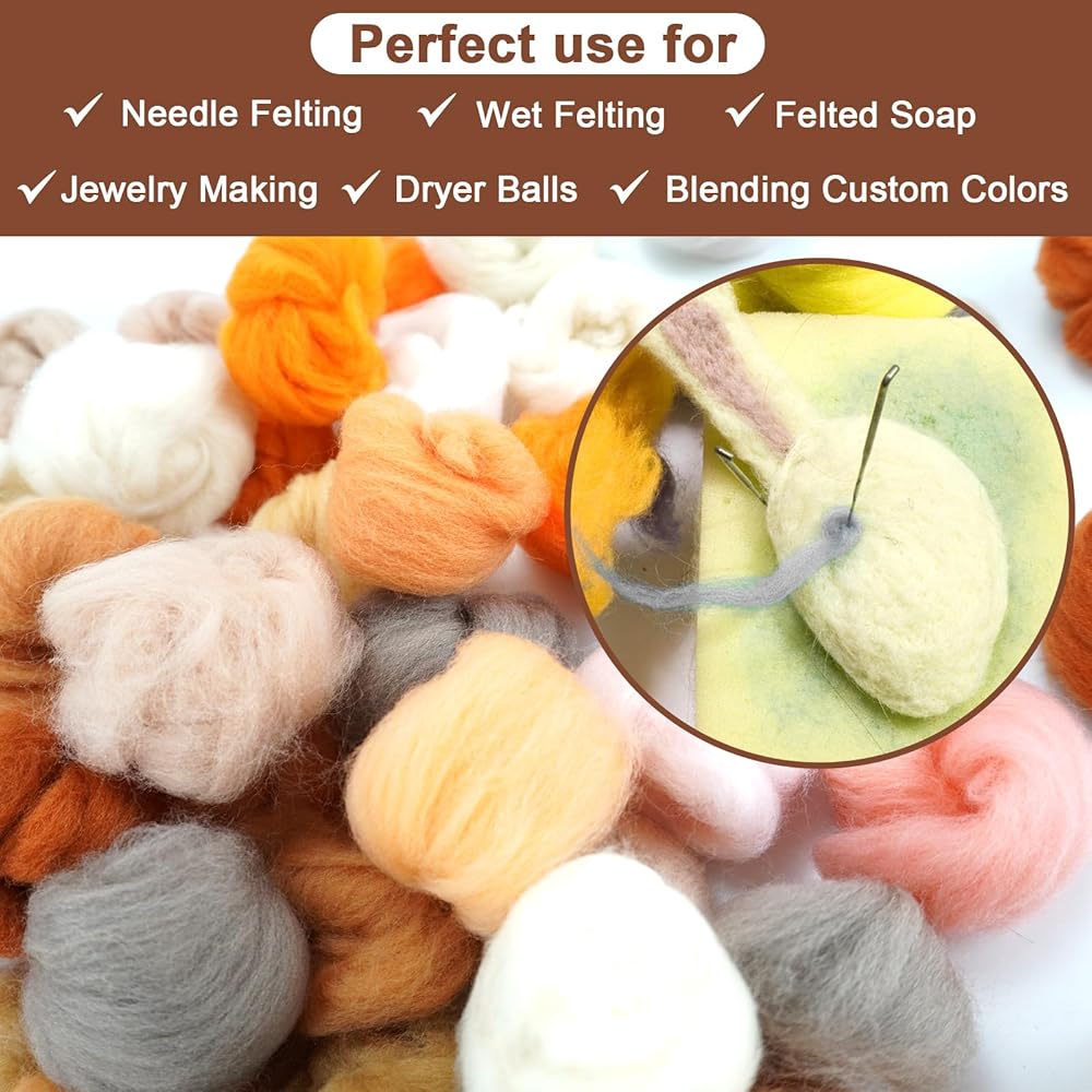 • ألوان غنية: 24 لونًا زاهيًا من الصوف الملبد بالإبرة، نقدم لك 72 عبوة من الصوف المتجول من الألوان الداكنة إلى الفاتحة، وهي أقرب إلى موضوع الشتاء؛ بألوان غنية وكميات كافية تلبي احتياجاتك.