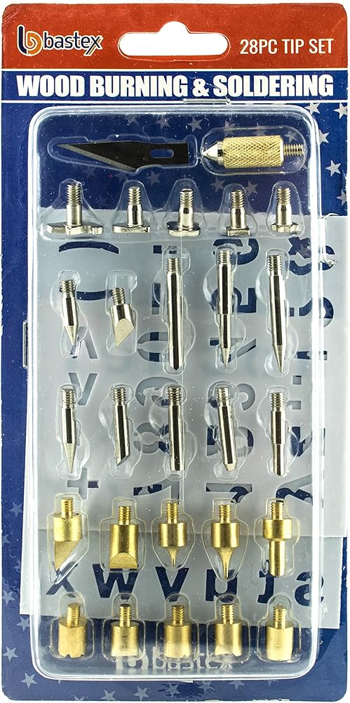 مجموعة احتراق الخشب الاحترافية من باستيكس مكونة من 28 قطعة. رؤوس لحام متنوعة للأعمال الخشبية مع استنسلات رائعة للفنانين المحترقين في الخشب، لإضفاء الطابع الشخصي والحرف اليدوية الأخرى.