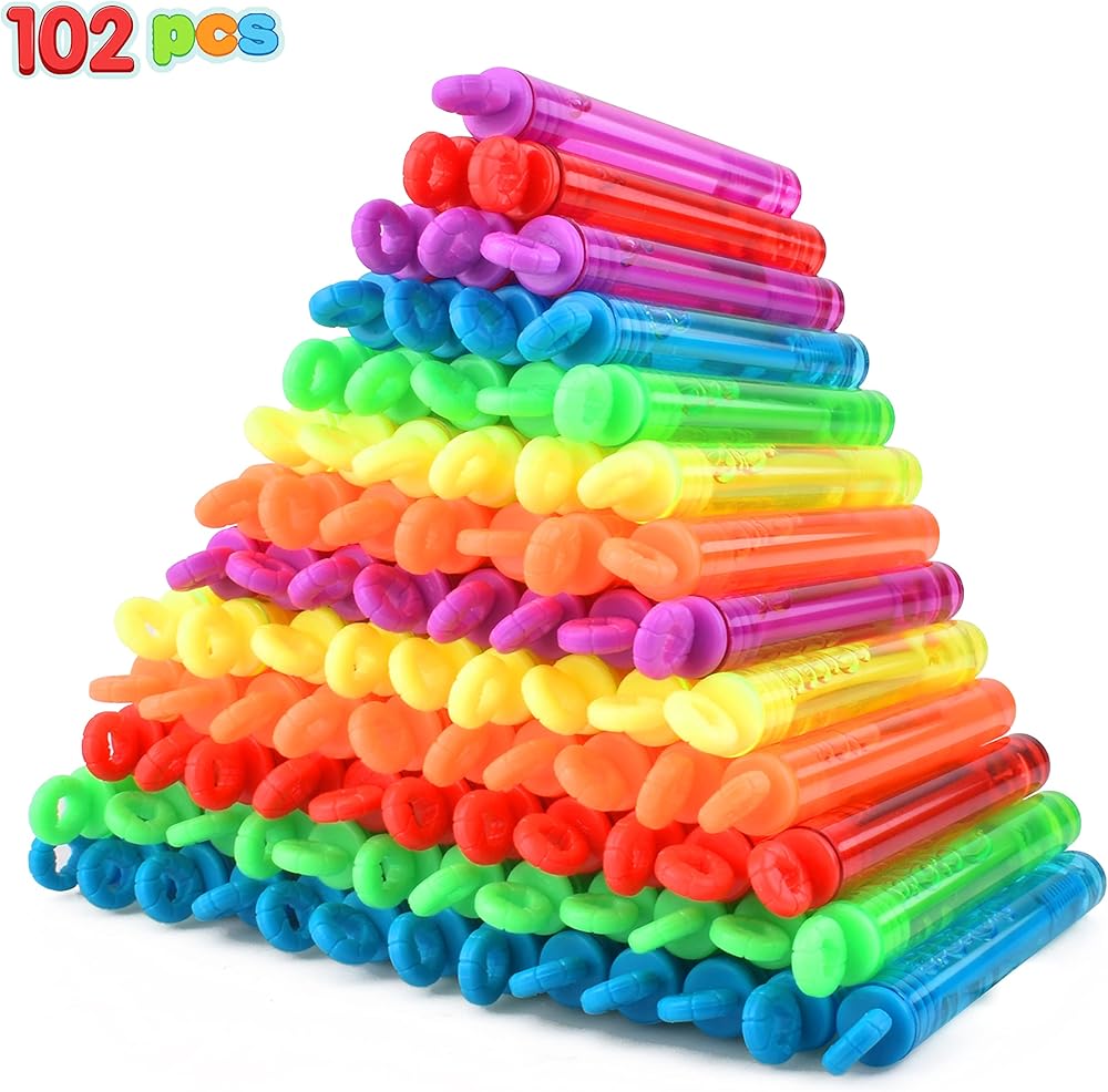 SUPER VALUE PACK. Our Kids Bubble Toys includes 102 Pcs Mini Bubble Wand with delicate and lovely circle topper decoration that come in 8 vibrant colors.Celebrate with bubble in bulk will always be a great choice!