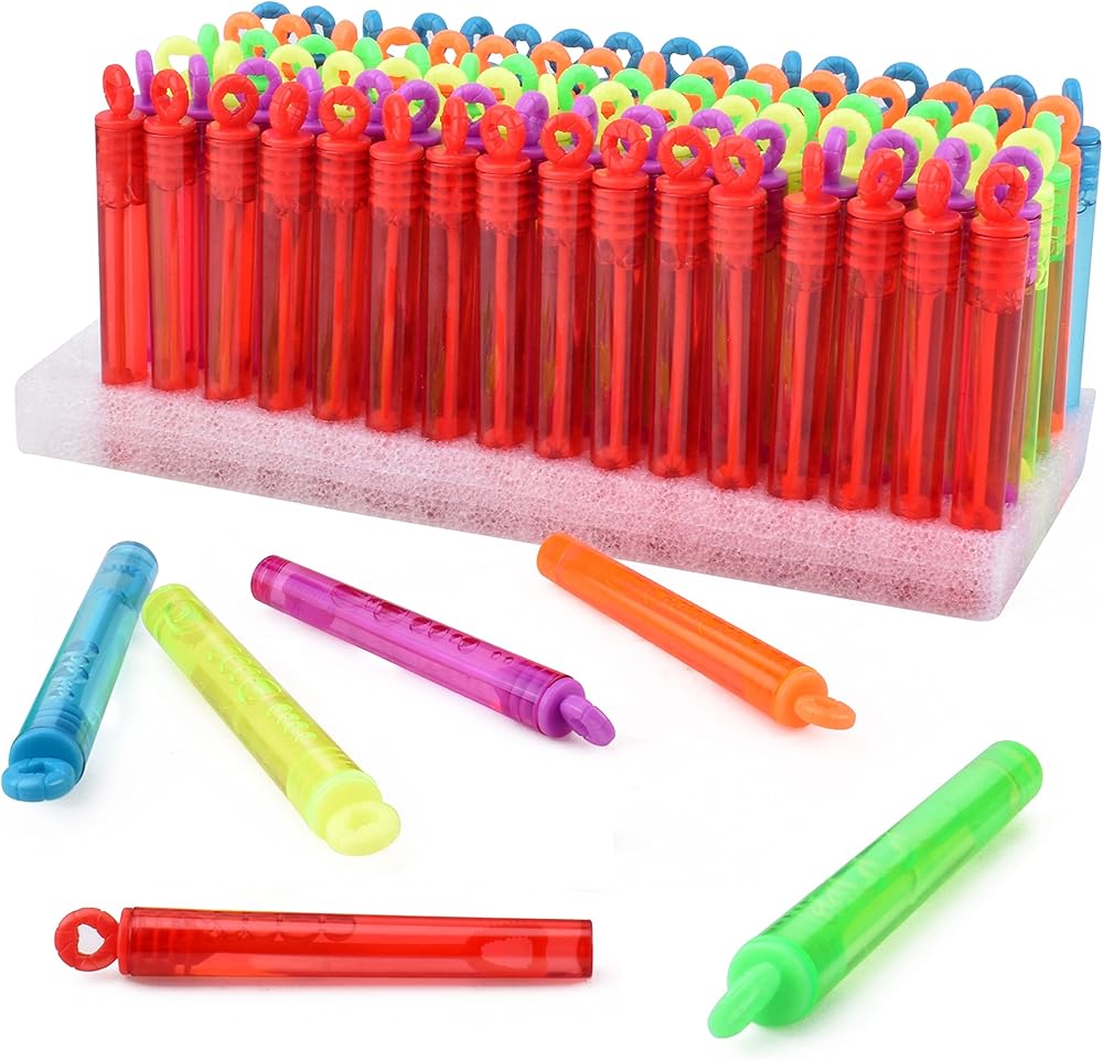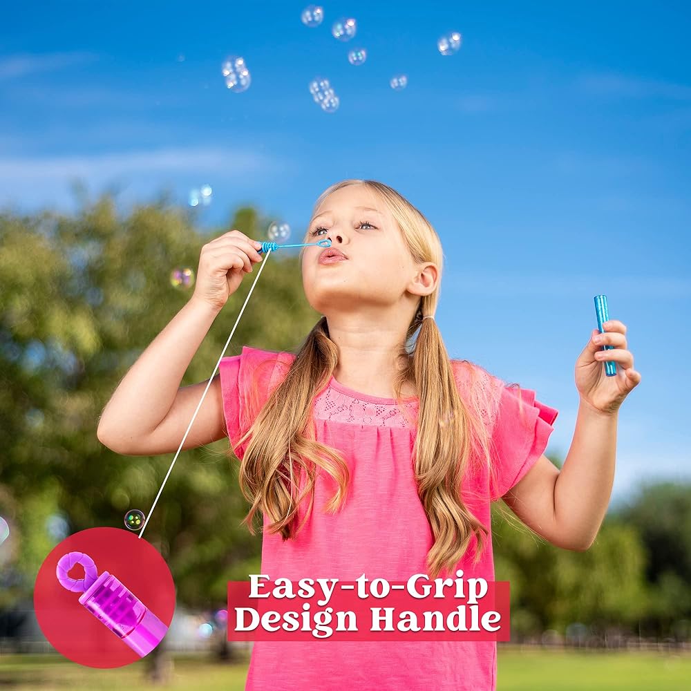 EASY TO USE. Perfect mini party bubbles for kids and adults! Leak-proof, evaporation-proof. You won't find better bubble tubes than this anywhere else! Allows fun Interactions with peers as they play around. Great small bubbles for party favors, bonding toy for friends and family. Ideal gift for kids, for party supplies, wedding, birthdays, party favors, and more!