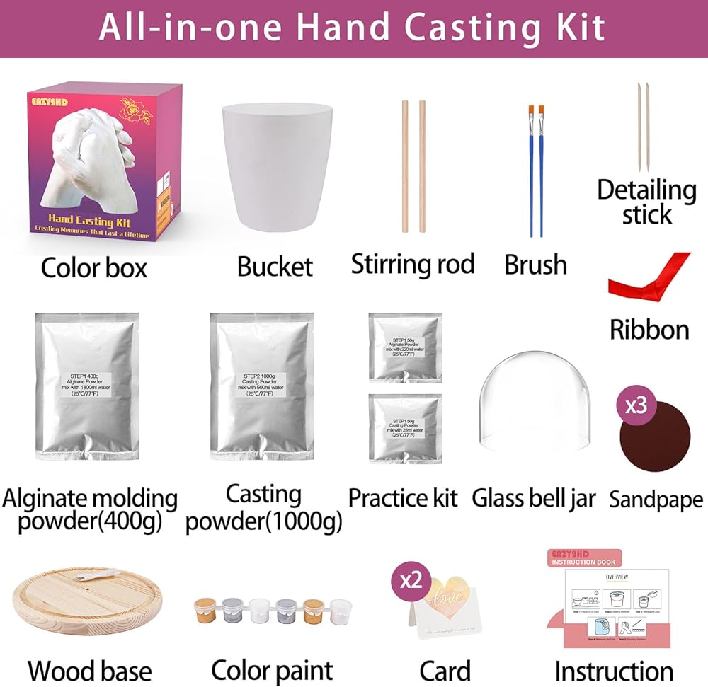 إنشاء ذكريات دائمة: يمكن لمجموعة صب القالب اليدوي التقاط كل خط رفيع وبصمات الأصابع، ويمكنك استخدام المجموعة لصنع منحوتات يدوية وأشياء مصبوبة للاحتفال بالذكرى السنوية للزفاف وإنشاء ذكريات دائمة. أنشطة ممتعة يمكنك القيام بها مع شريكك والعائلة بأكملها، ممتعة ورومانسية.