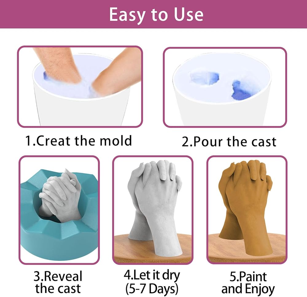 مجموعة صب يدوية للأزواج من Eazy2hD - مجموعة قوالب يدوية من الجص للعائلة والذكرى السنوية وهدايا عيد الحب لها أو له، هدية عيد ميلاد وخطوبة للنساء من Eazy2hD
