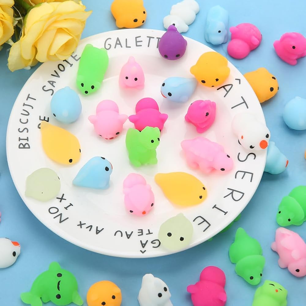 Specification-tiny mochi squishy toys random colors and shapes. most are squishy animals, some are fruit, flower