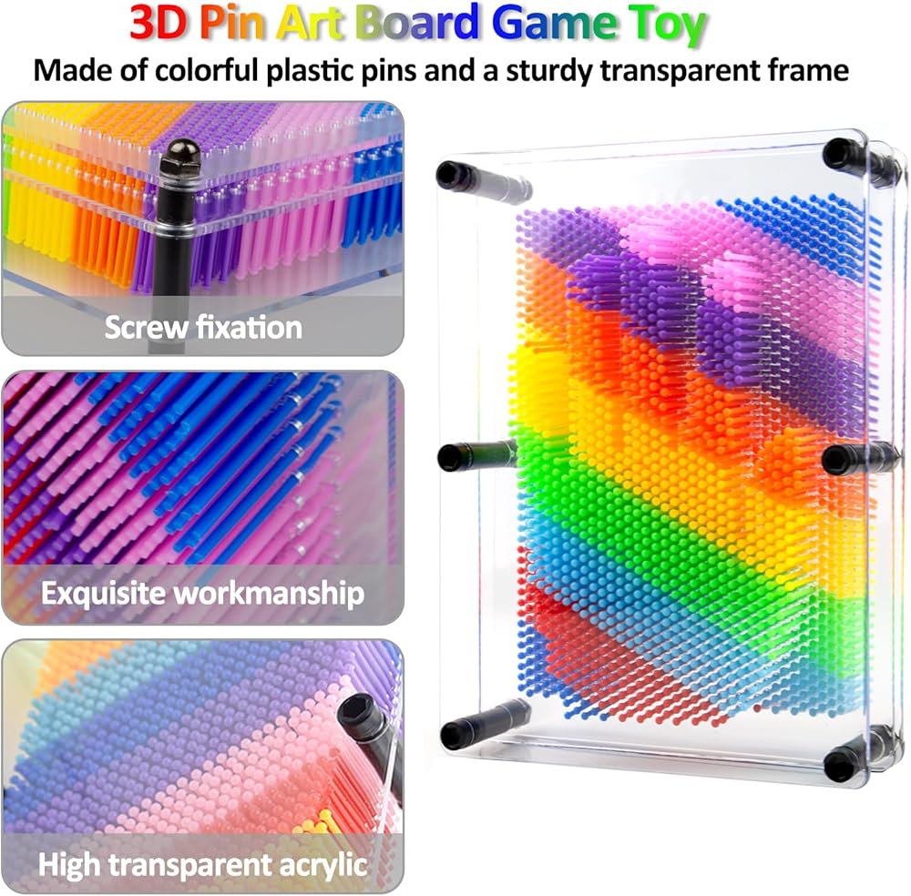 【جودة عالية】هذه اللعبة الفنية ثلاثية الأبعاد مصنوعة من دبابيس بلاستيكية ملونة وإطار شفاف قوي. حجم كبير 8 × 6 × 2 بوصة، الوزن 1.1 رطل. يوصى به لمدة 6 سنوات فما فوق. يتميز بواجهة بلاستيكية شفافة سميكة وتصميم شاشة دبوس