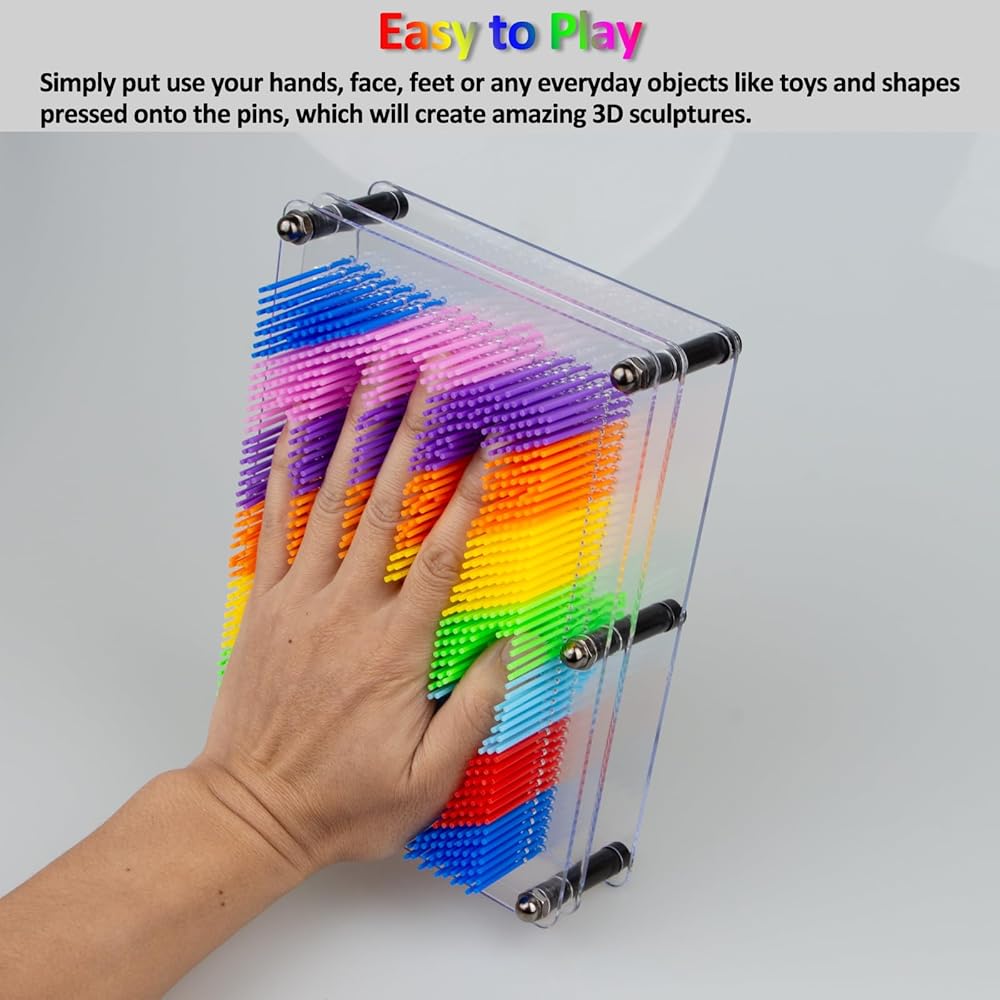 【سهلة اللعب】ببساطة استخدم يديك أو وجهك أو قدميك أو أي أشياء يومية مثل الألعاب والأشكال المضغوطة على الدبابيس، مما سيخلق منحوتات ثلاثية الأبعاد مذهلة. ما عليك سوى دفع الدبابيس للخلف وستكون اللوحة القماشية جاهزة مرة أخرى لأي شيء يخطر ببالك. هناك طرق لا حصر لها لتصميم هذه اللعبة.