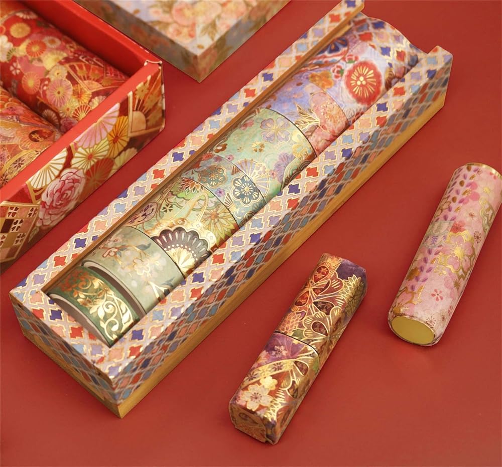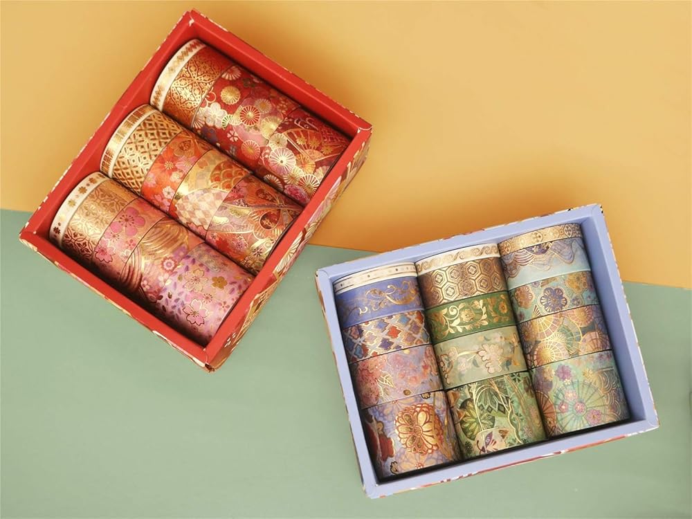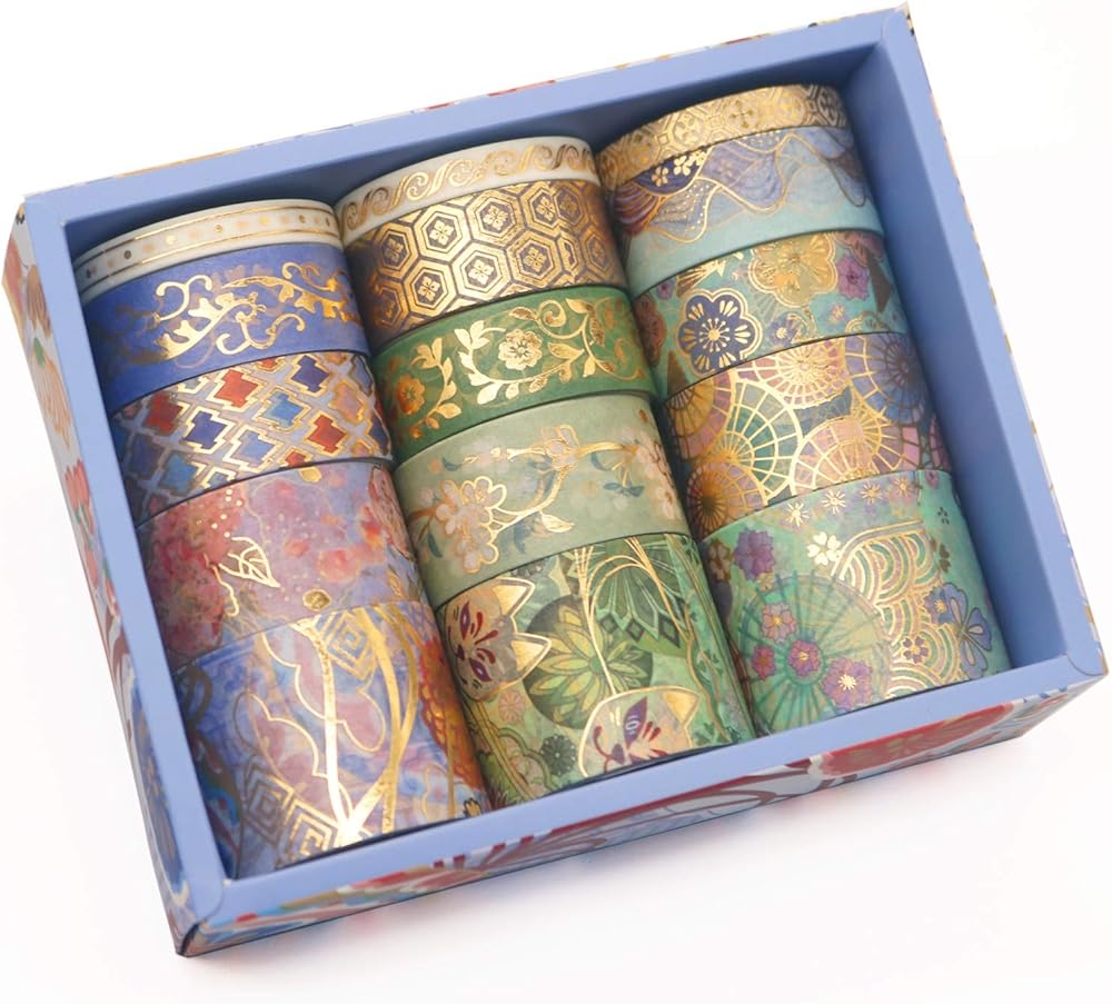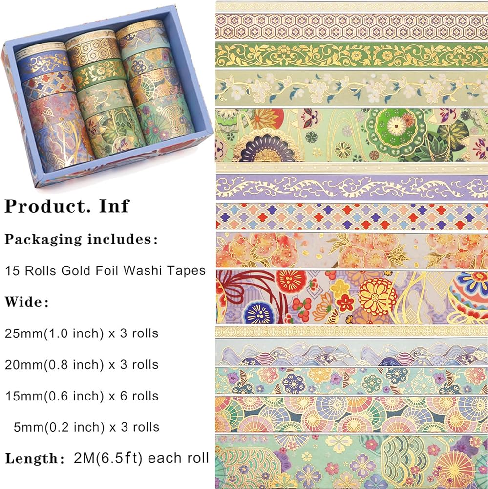 ✦شريط واشي من الرقائق المعدنية: 15 لفة شريط أخضر ذهبي، عرض 5 مم، 15 مم، 20 مم، 30 مم، الطول 2 متر. معبأة في صندوق هدايا فاخر. تضيف مجموعة أشرطة واشي القديمة هذه اللون والحيوية إلى الأشياء التي يتم لصقها، مما يجعل الحياة اليومية أكثر إثارة للاهتمام