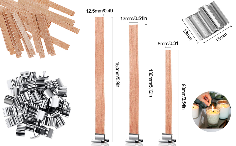 - يمكن أن تعمل فتائل الشموع الخشبية هذه مع معظم الحاويات مثل البرطمانات والعلب والأوعية وأكواب القهوة والأواني النباتية وغيرها.