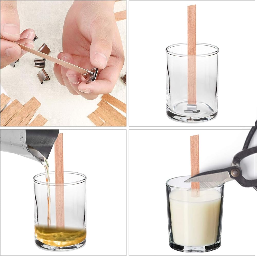 مريحة في الاستخدام - فقط قم بتثبيت فتائل الشمعة على الحامل الحديدي وضعها في أسفل الحاوية، ثم امسك الجزء العلوي في المنتصف أثناء صب الشمع. وإذا كنت ترغب في جعل واحدة أصغر يمكنك تقليم الفتيل بدقة.