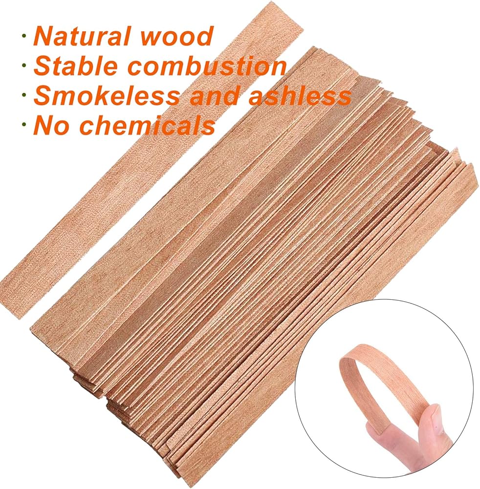 مادة آمنة ومتينة - شموعنا الخشبية السميكة مصنوعة من مادة الخشب الطبيعي، غير سامة وآمنة للاستخدام، لا توجد رائحة أو رائحة كريهة، سهلة الاحتراق بدون تدخين أسود وتعمل بشكل جيد بمعدل مناسب. مساعدات رائعة لمحبي الأعمال اليدوية، مثالية للإقران مع شمع البارافين لصنع شموع تي كاب والشموع العمودية.