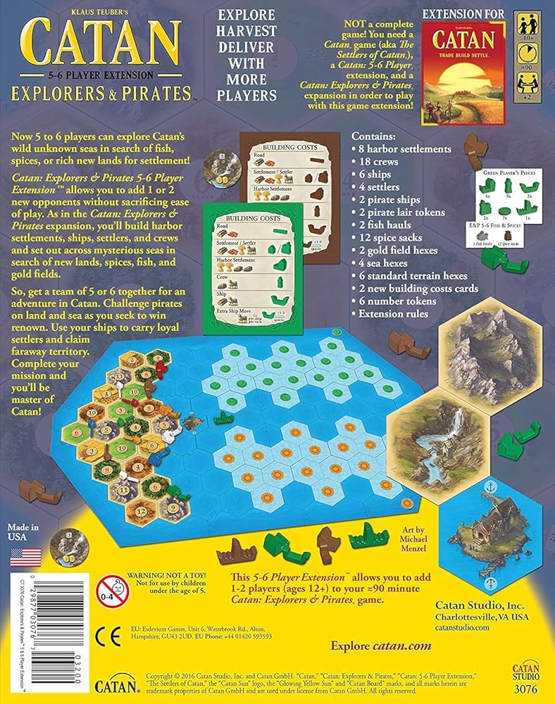 توسيع لعبة CATAN Explorers and Pirates Board مما يسمح بإجمالي 5 إلى 6 لاعبين لتوسعة CATAN Explorers and Pirates | لعبة الطاولة للكبار والعائلة | من إنتاج استوديو كاتان