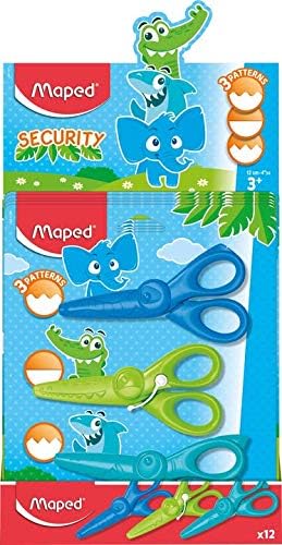 مابد مقص امان للحرف اليدوية للاطفال من كيدكرافت (عبوة من 3 قطع) بتصميم متعرج ومنحنيات وقصة مستقيمة