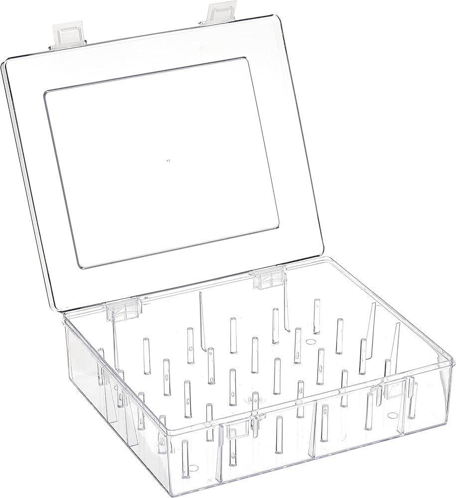 هيملاين صندوق خيط تطريز لماكينة الخياطة، صندوق خيط طويل جدًا، يحمل 30 مخروطًا صغيرًا أو ما يصل إلى 100 شرطي أصغر. متينة وقوية مع مفصلات ومماسك قوية.