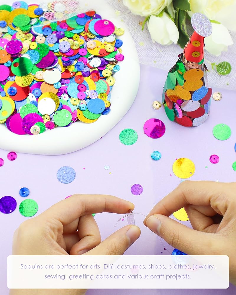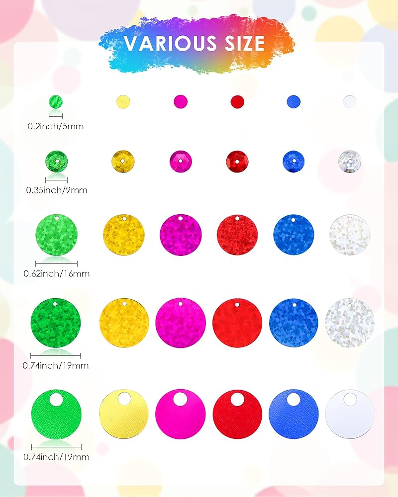 - بألوان زاهية لا تبهت أو تفقد لمعانها، هذه الترتر المستديرة مثالية لتزين الملابس والإكسسوارات. سهل الخياطة، أو الخيط، أو الدبابيس، أو الغراء.