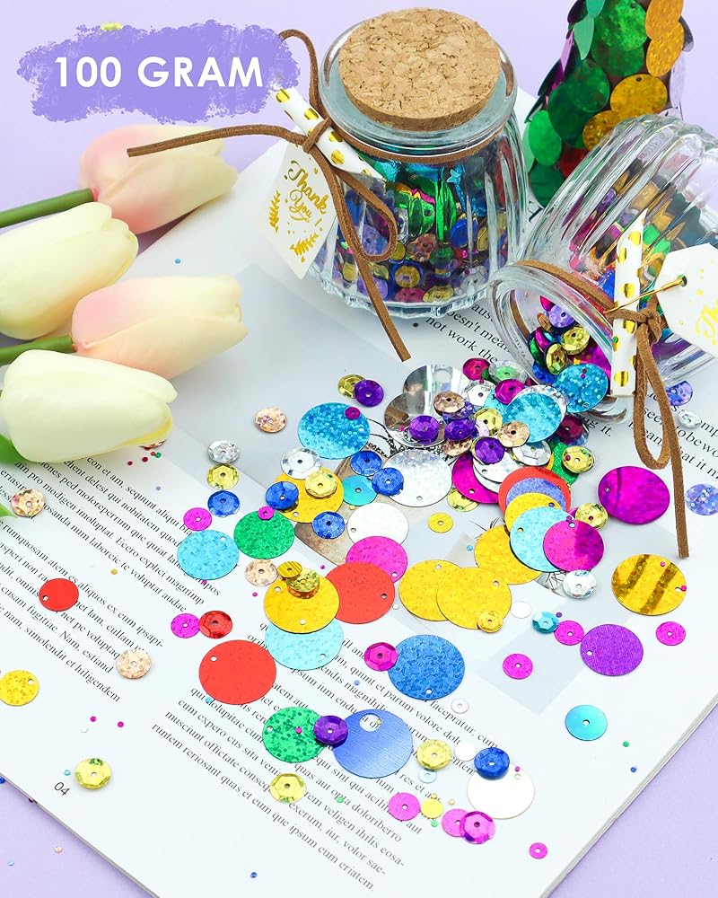 100 جرام من الترتر والسبانجلز اللوازم الحرفية المتنوعة، ألوان وأحجام متنوعة لأزياء الزفاف والمجوهرات الترتر (دائرية)
