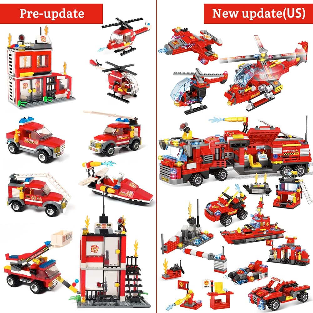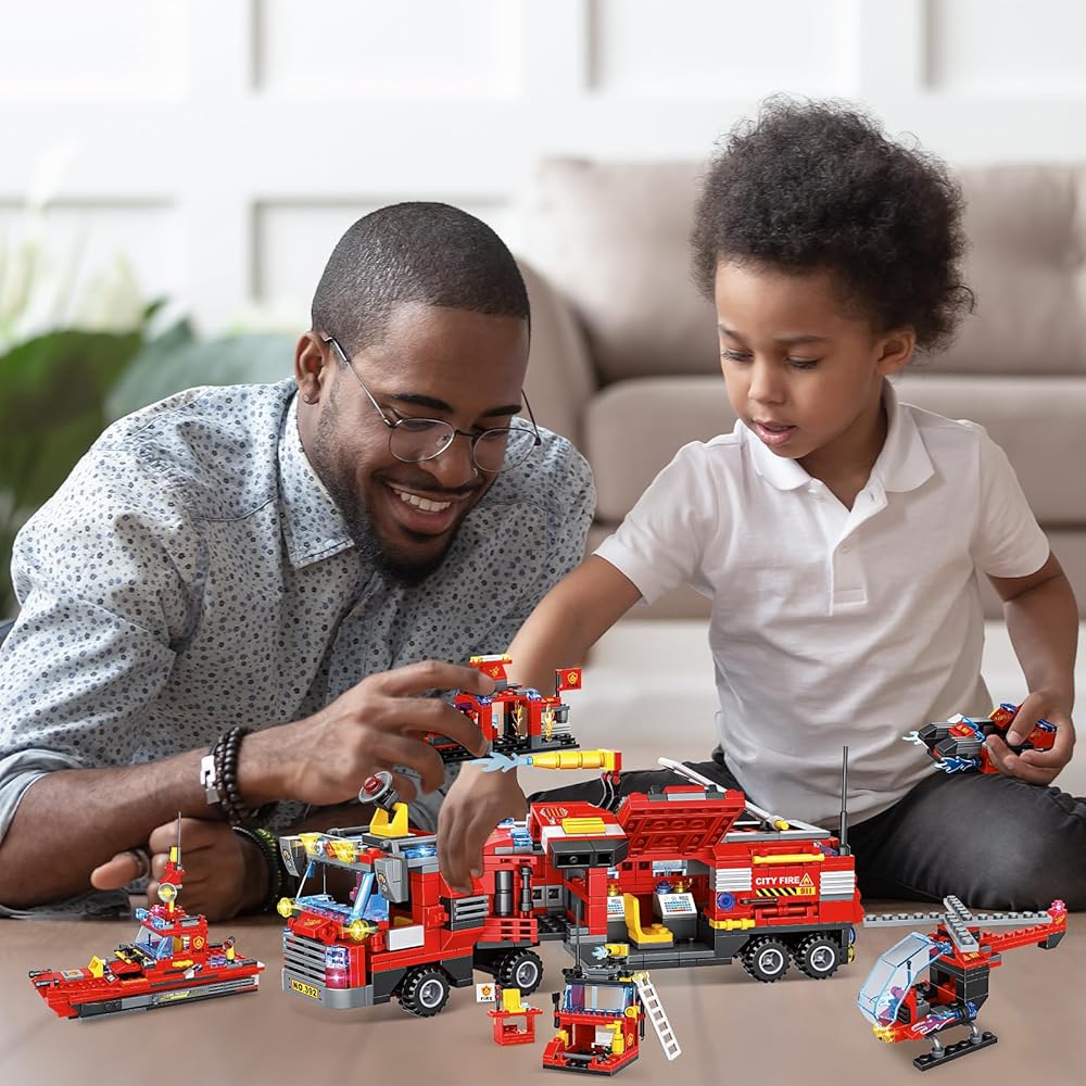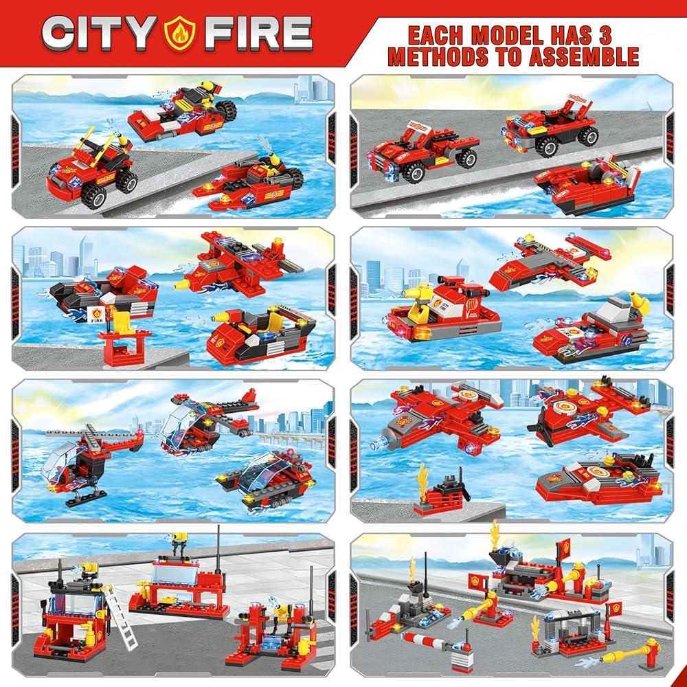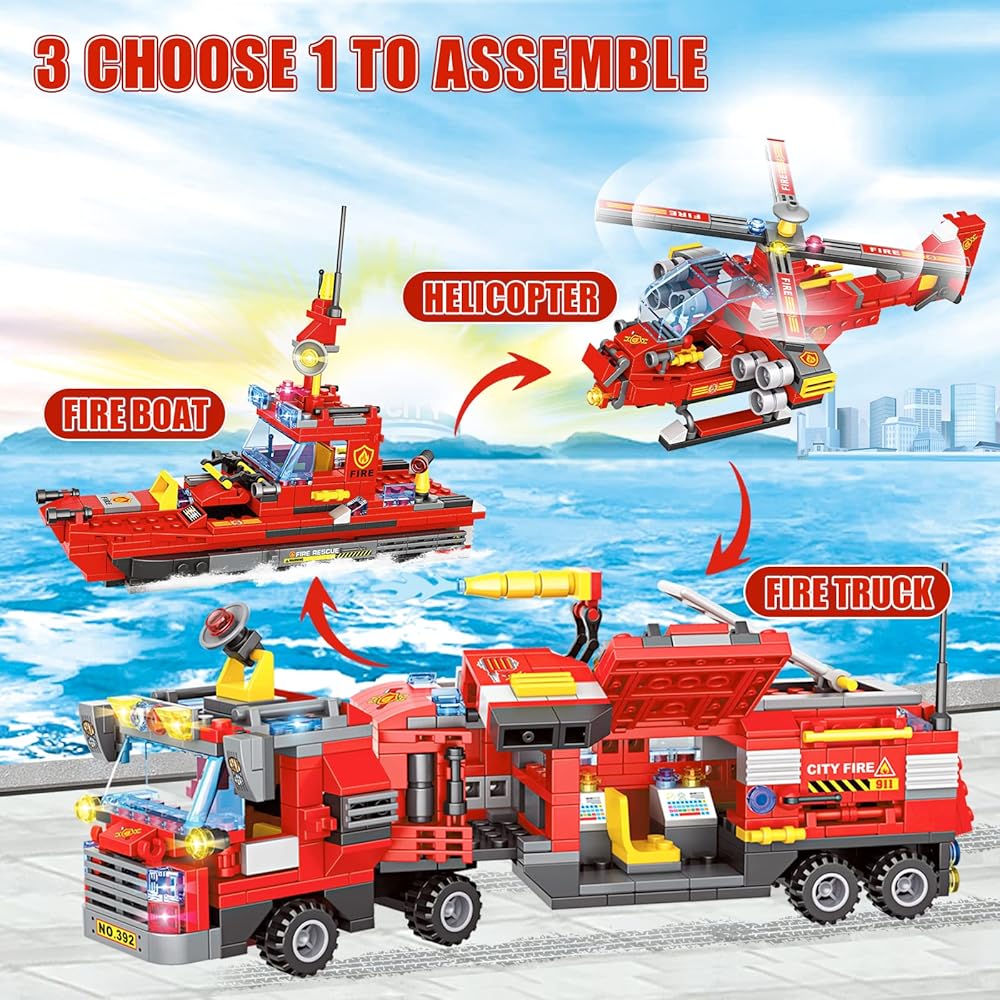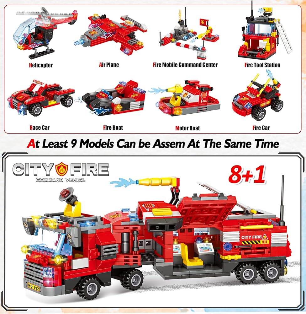 【لمحبي رجال الإطفاء】مصنوعة من 1432 قطعة من مكعبات البناء بأحجام مختلفة وأدوات حادة لتكوين لعبة شاحنة إطفاء المدينة، ستحصل على شاحنة مركز قيادة متنقلة في المدينة وطائرة هليكوبتر إنقاذ من الحرائق ومجموعة مكعبات بناء قارب الإنقاذ من الحرائق، دع الأطفال يستمتعون بعالم مكعبات البناء، وخلق مغامرات إنقاذ لا نهاية لها.