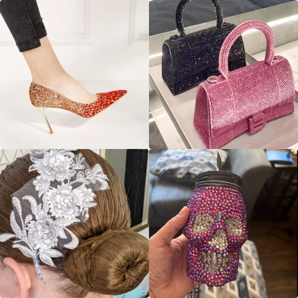 3. تستخدم على نطاق واسع في الملابس والأحذية والحقائب وفستان الزفاف والقبعات والأكواب الزجاجية وإكسسوارات الهاتف المحمول والقيثارات وسجلات القصاصات وحقائب اليد والمحافظ والمجوهرات والمزهريات والأكواب ودبابيس الشعر والأجهزة اللوحية والنظارات والمزيد من أي نوع من الأعمال اليدوية المصنوعة يدويًا.