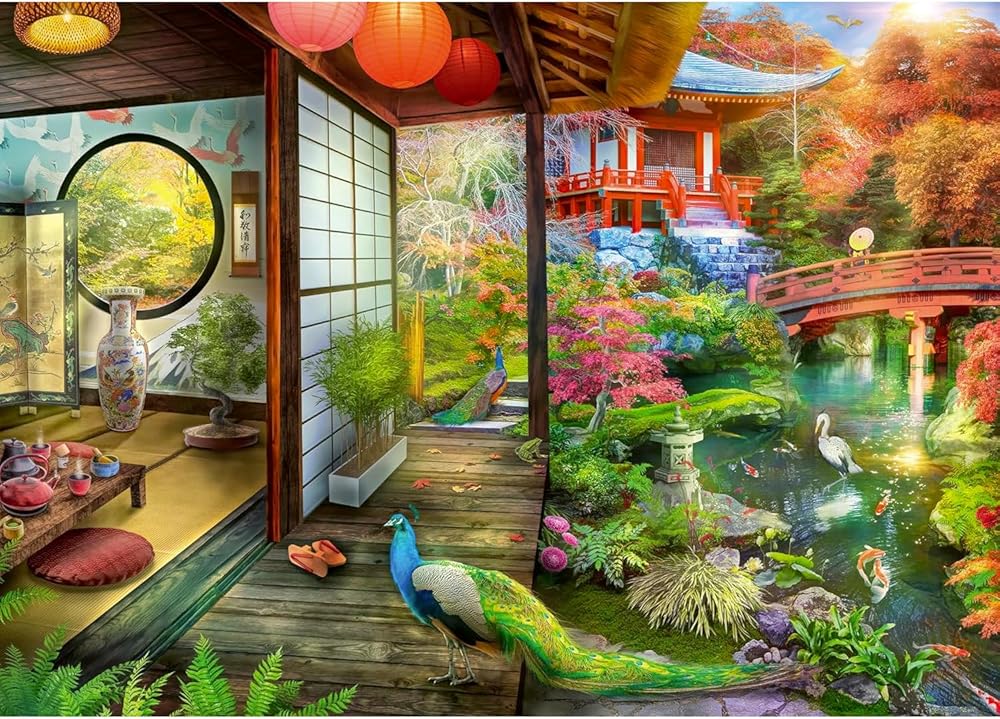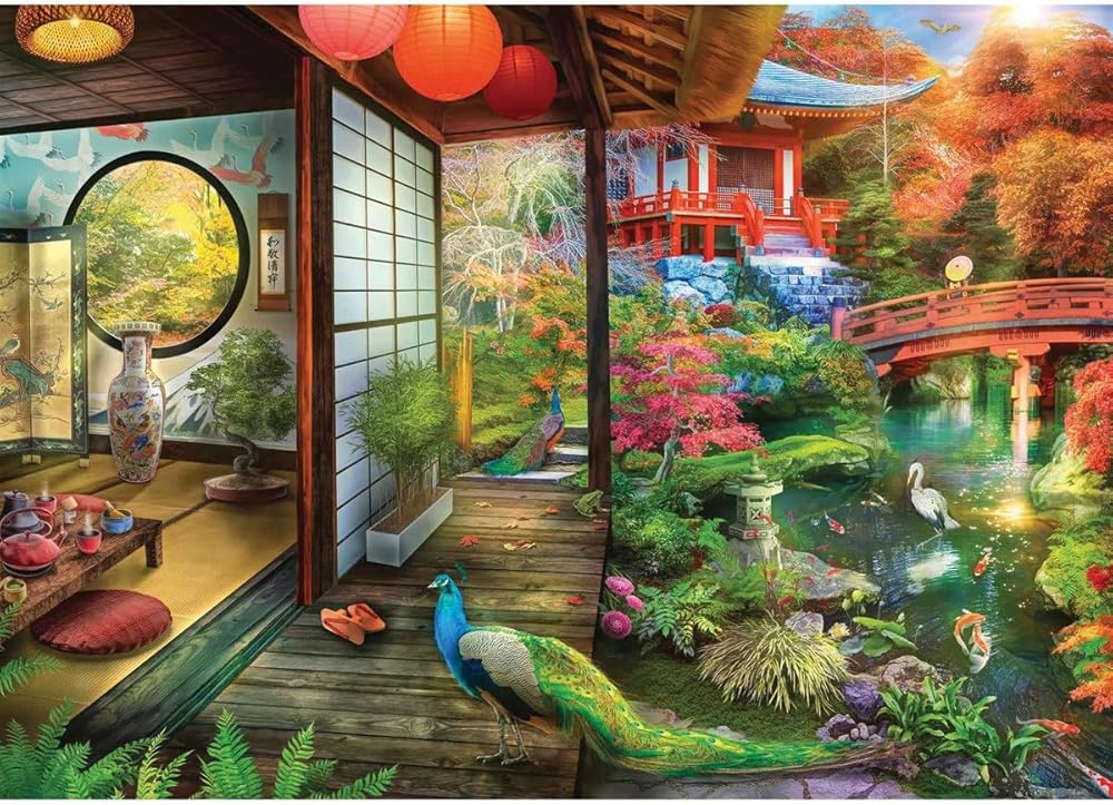 - [نبذة عن هذه الأحجية المكونة من 1000 قطعة] استرخ في هذا المشهد الهادئ وشارك في الفنون الجميلة لحفل الشاي في أحجية "كيوتو جابان جاردن تيهاوس"!