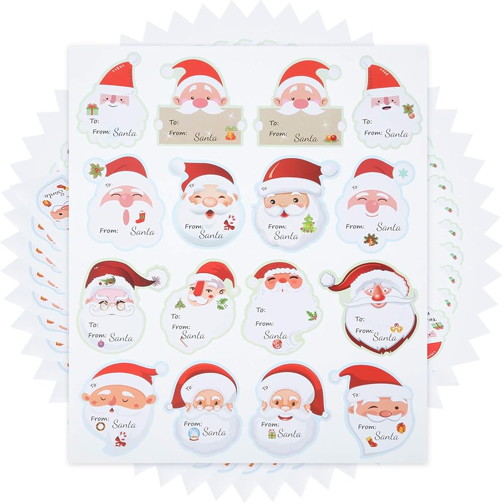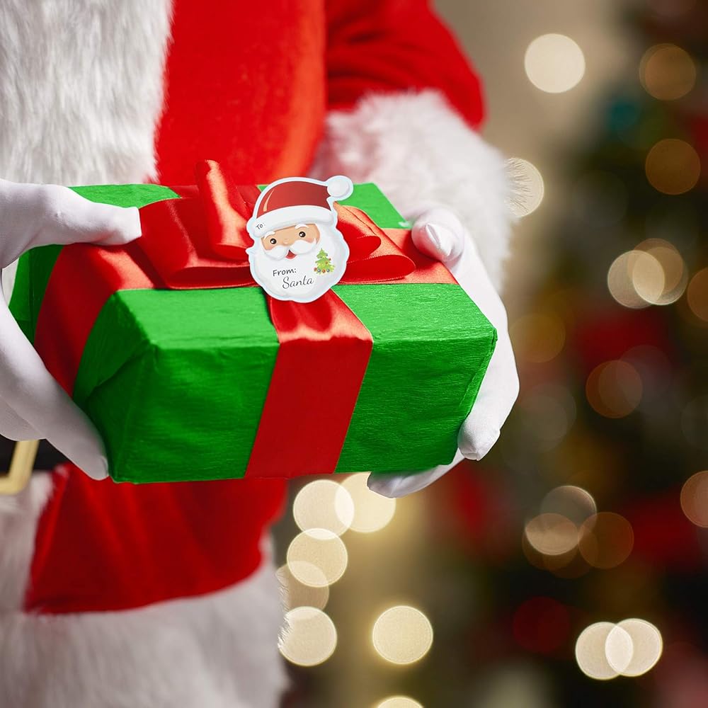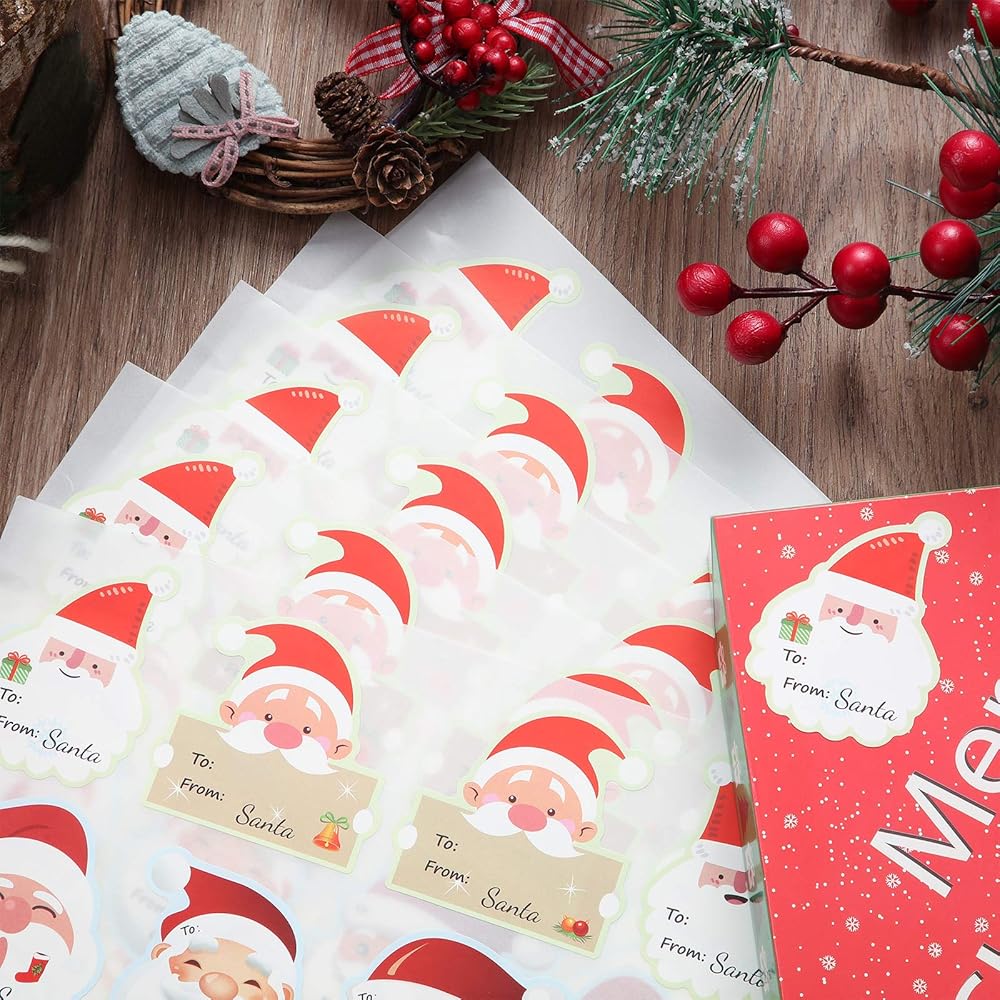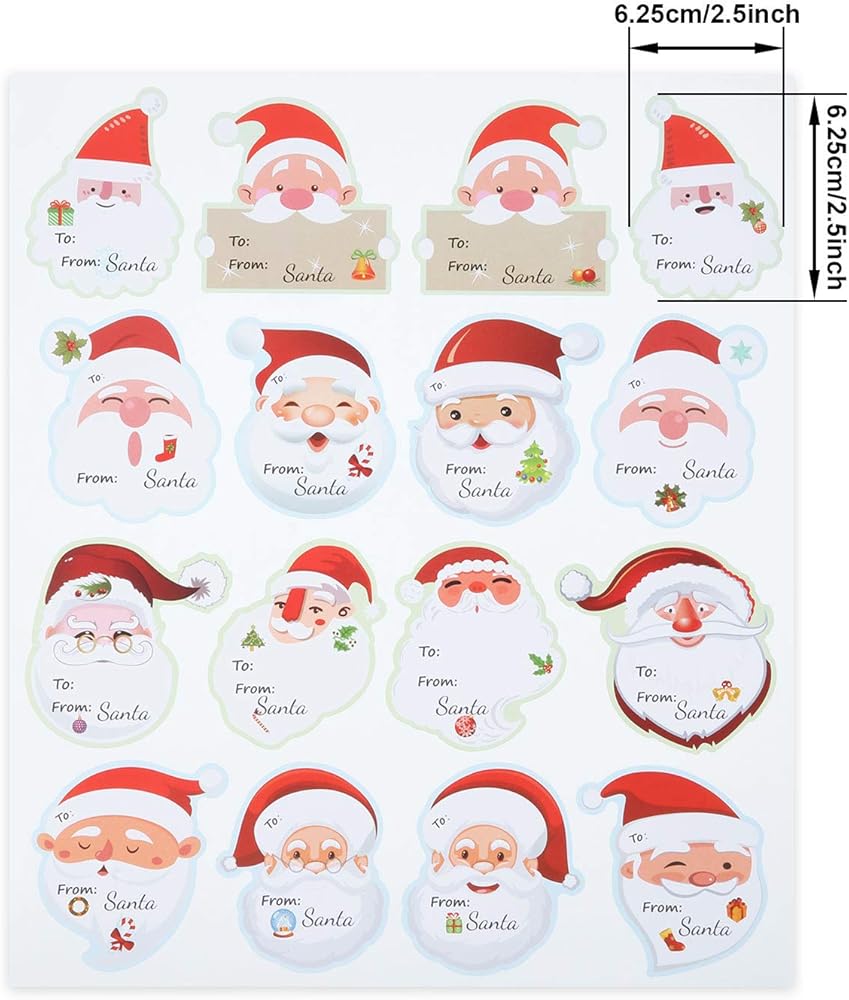Suitable size: each Santa wrapping label sticker measures approx. 6.25 x 6.25 cm/2.5 x 2.5 inches, suitable sizes for you to stick on the gift boxes easily, and there is enough space on each sticker for you to write your name and the name of someone else