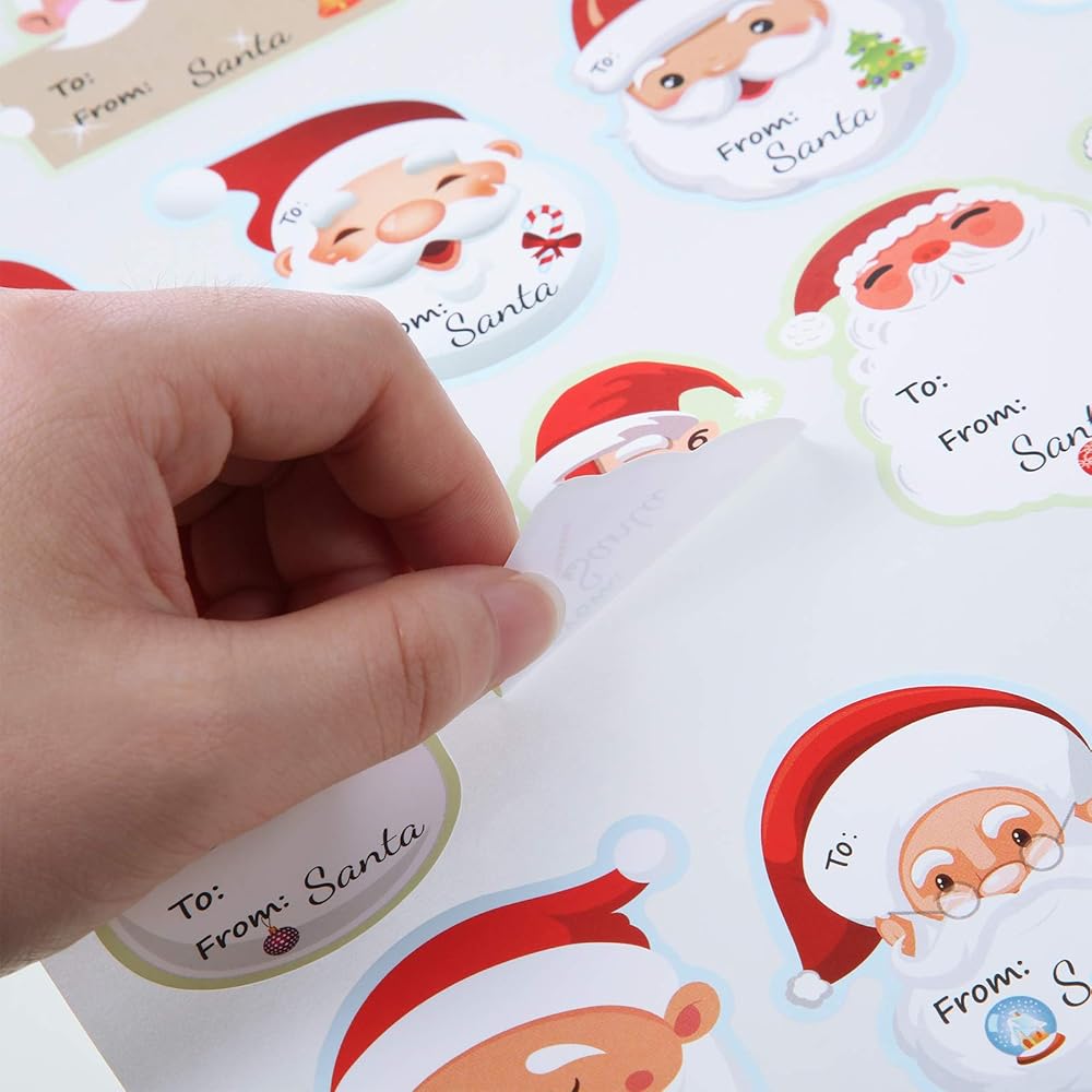 Extensive usage: the self-adhesive Santa Claus stickers can be stuck on gift boxes, Christmas costumes, Christmas card envelopes, gift bags, gift baskets, snack bags, holiday gifts hanging tags, gift wrapping paper, greeting card, table, rooms, door and so on, which will add a warm feeling to your decor by writing your name on stickers