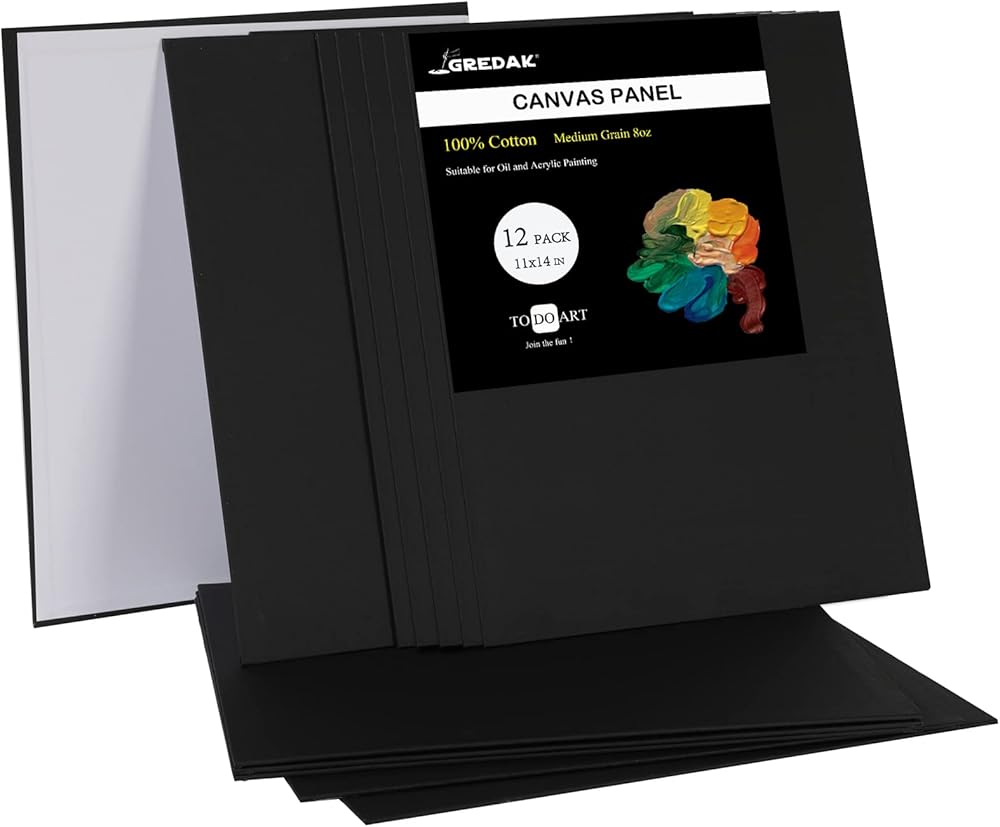 【صمام فائق】قماش أسود كبير للرسم، معبأة بالكثير من 9x12 بوصة/12 قطعة. خفيفة الوزن وسهلة التخزين والحمل. يسمح السطح ذو النسيج المتوسط بالمزج السلس، ويمنع الطلاء من الجفاف بسرعة كبيرة، ويقلل الحاجة إلى الواقع. ب