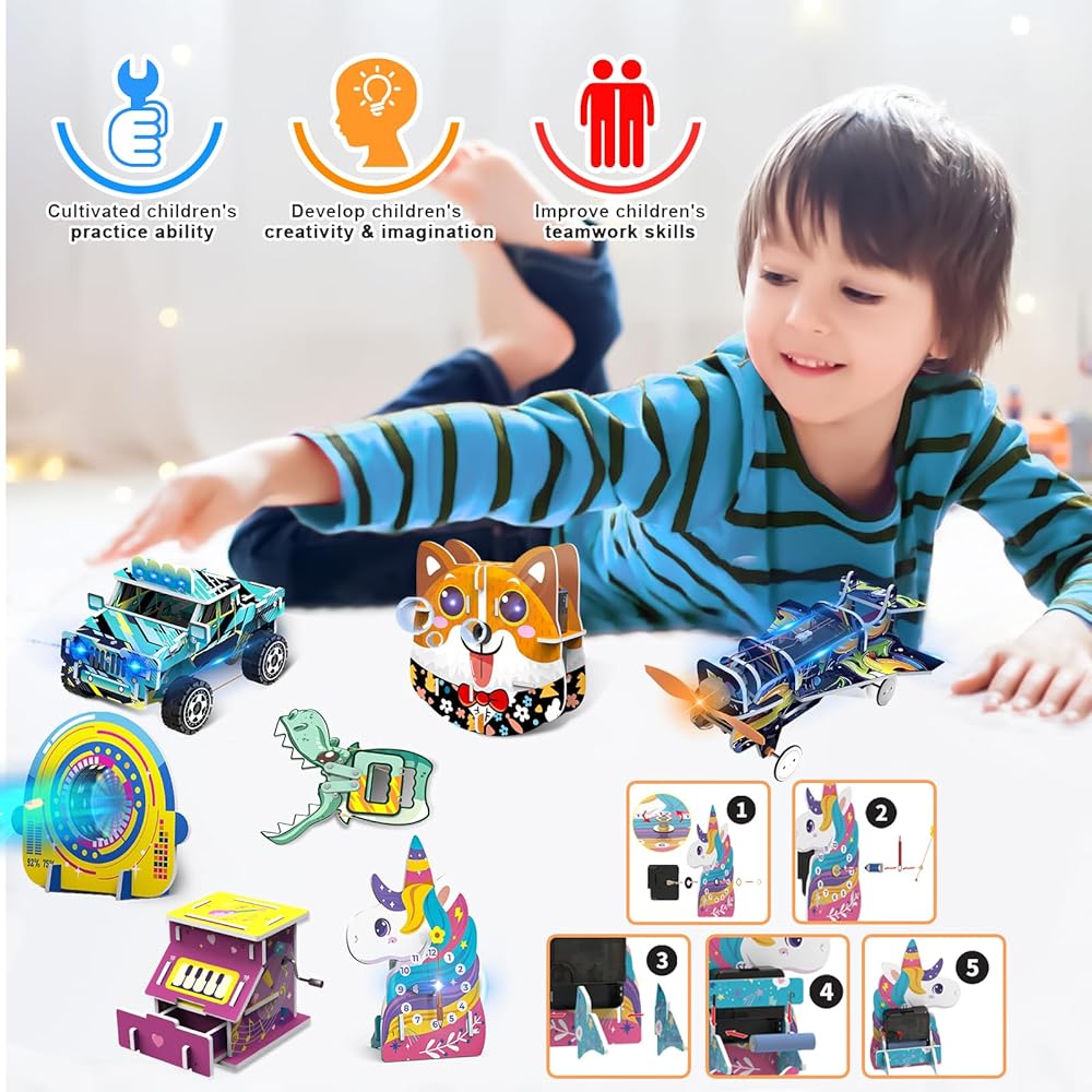 6 في 1 مجموعات بناء العلوم والتكنولوجيا والهندسة والرياضيات للأطفال الذين تتراوح أعمارهم بين 8 و12 عامًا، ومشاريع التجارب العلمية للأطفال، ونماذج خشبية للسيارات والديناصورات الحرفية هدايا للأولاد من سن 8 إلى 12 عامًا، وألعاب ألغاز خشبية ثلاثية الأبعاد للأولاد والبنات
