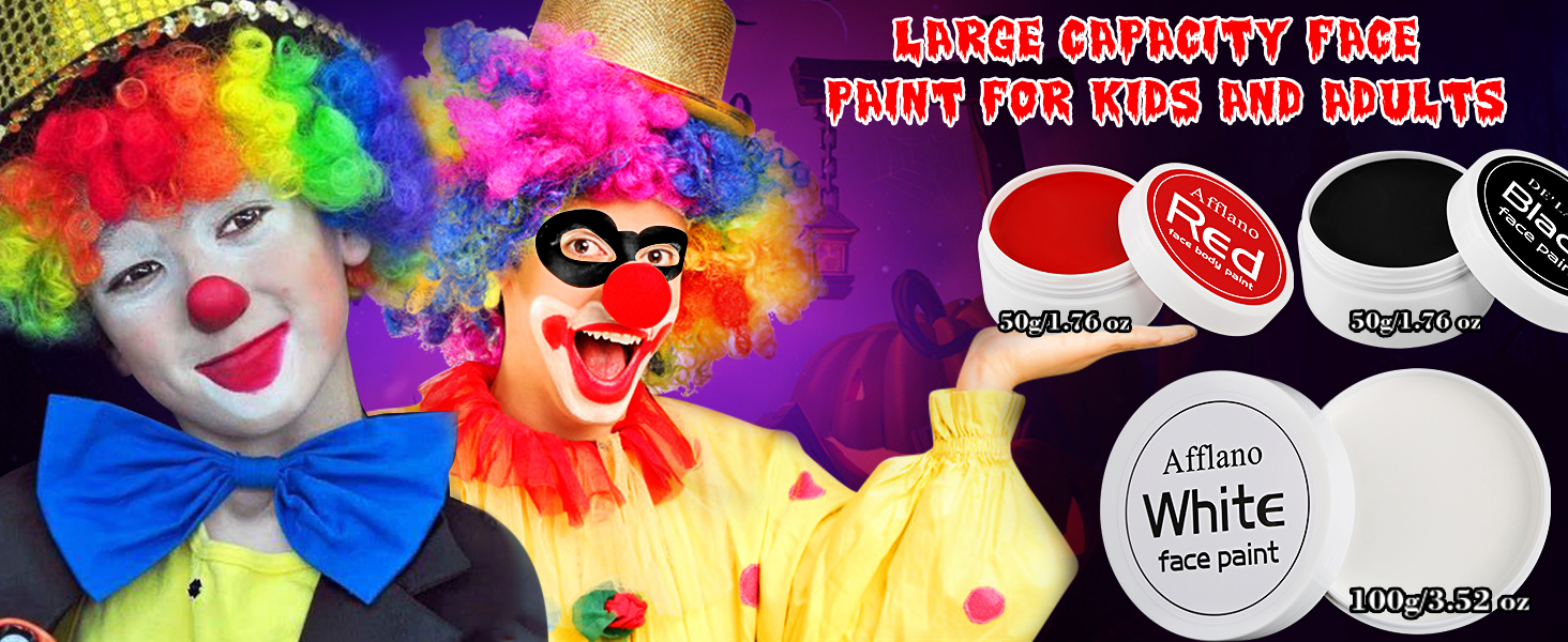 ❤【أكبر مجموعة طلاء للوجه باللون الأحمر والأبيض والأسود على الإطلاق】-- يمكن استخدام طلاء الجسم الكلاسيكي باللون الأحمر والأسود والأبيض للوجه والجسم. كاللون الأساسي، تحتوي مجموعات مكياج طلاء الوجه باللون الأحمر والأبيض والأسود على لوحة بيضاء مهرج واحدة بوزن 100 جم/3.52 أونصة، وطلاء وجه أسود حقيقي بوزن 60 جم/1.76 أونصة، وطلاء وجه أحمر بوزن 60 جم/1.76 أونصة. والتي يمكن أن تلبي جميع مطالبك