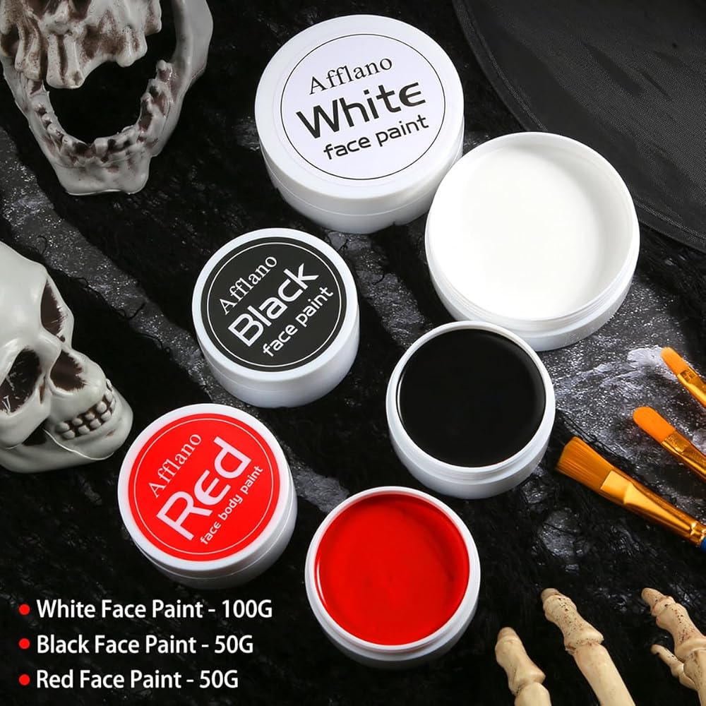 اللونمجموعة طلاء الوجه باللون الأسود والأبيض والأحمر مكونة من 3 قطع