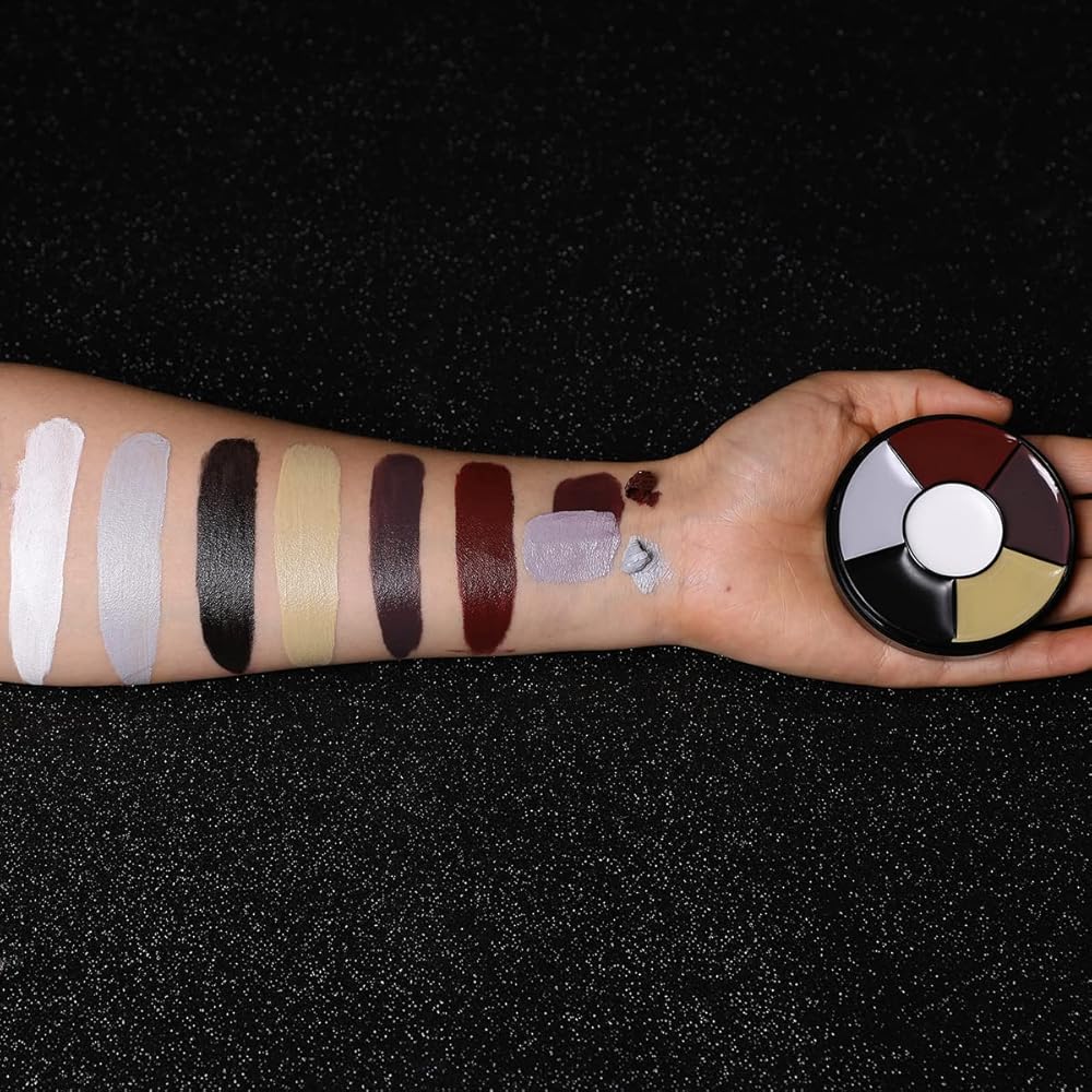 • Packing Included: 1x2.1oz Fake Blood,1x6 color Bruise Wheel(With enough 6 color paint to create realistic bruises) ,3pcs different size Stipple Sponges. Paint Palette Diameter: 6.6cm Net content: 10g; Outer packing:7.1x7.1x2.2cm