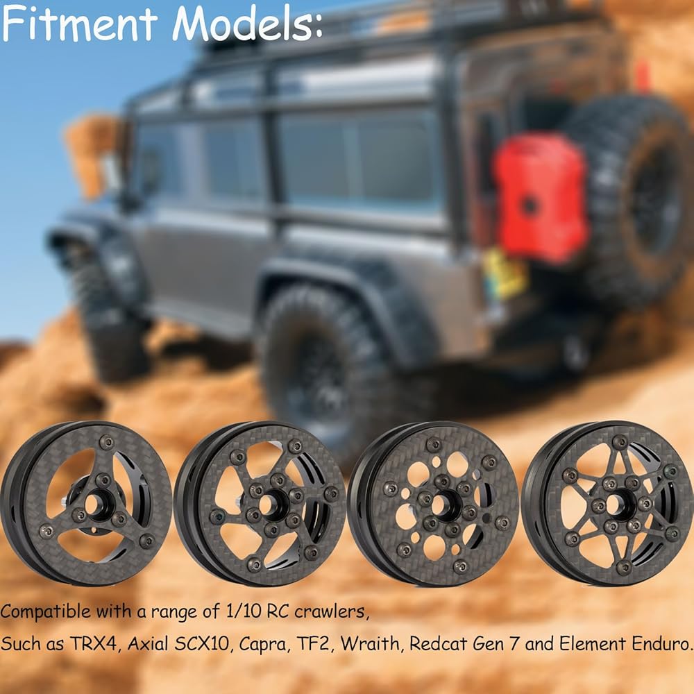 • ⚽ 【التركيب 1/10 RC نماذج الزاحف 】هذه العجلات المصنوعة من ألياف الكربون 1.9 تناسب مجموعة من الزاحفين RC 1/10، مثل TRX4، Axial Capra SCX10، TF2 وElement Enduro. يرجى التحقق بعناية قبل الطلب.