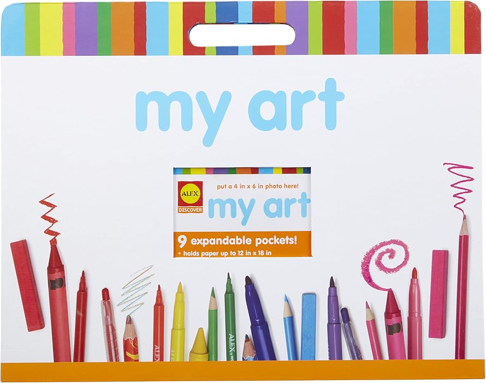 يعد ALEX Discover My Art رائعًا لتنظيم المشاريع المدرسية والأعمال الفنية الأخرى. يحتوي الملف القابل للتوسيع على مساحة كبيرة لتحف طفلك الفنية. يبلغ مقاس ملف الأكورديون الزاهي والملون 15 بوصة. بواسطة 19in. وتتميز بتسعة جيوب سيحب طفلك ملئها بالرسومات واللوحات والمزيد. مناسبة للأعمار من 3 سنوات فما فوق، تحتوي هذه الحافظة أيضًا على جيب أمامي مصمم لحمل صورة واحدة مقاس 4 × 6 بوصات.