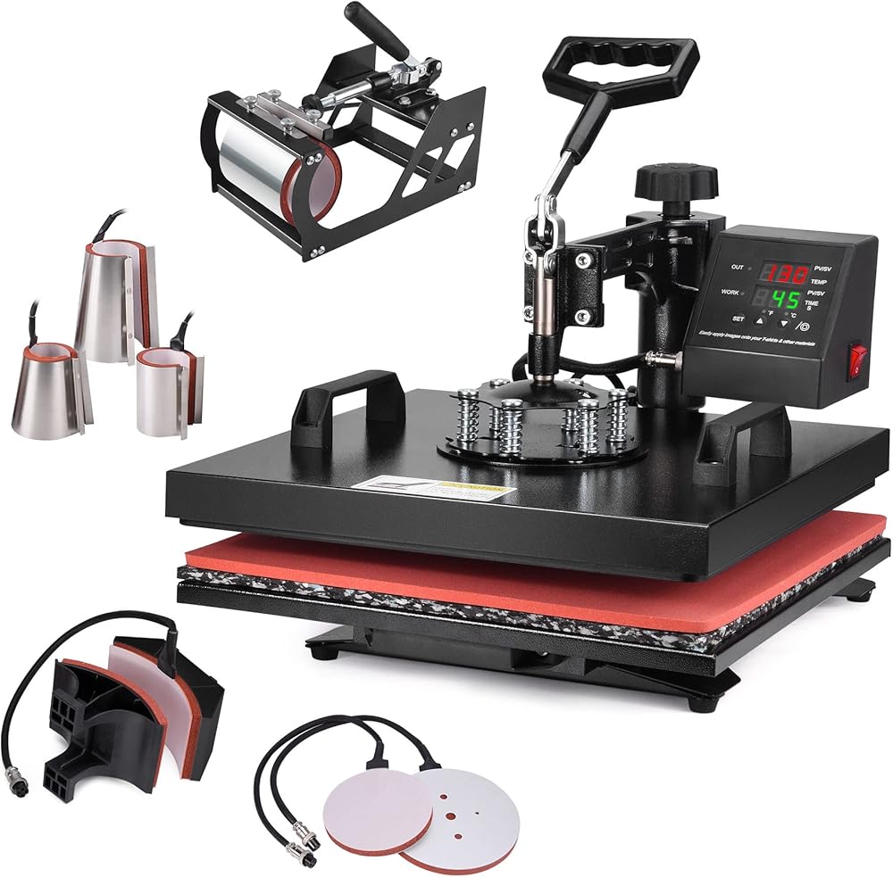 ماكينة ضغط حراري 8 في 1 من Slendor مقاس 15 × 15 بوصة، تأرجح 360 درجة بعيدًا، آلة ضغط تي شيرت رقمية متعددة الوظائف، مجموعة تصعيد نقل الحرارة للقمصان والأكواب وغطاء لوحة القبعة