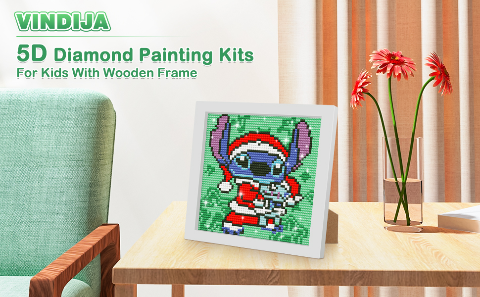 مجموعات الرسم الماسي 5D للأطفال البالغين مع إطار خشبي، غرزة DIY حفر كامل الماس جوهرة الفن للأطفال، والفنون والحرف اليدوية للفتيات الأولاد هدايا عيد ميلاد ديكور جدار المنزل