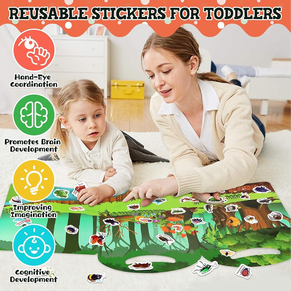 ألعاب تعليمية تعليمية: شاهد طفلك الصغير يتعلم أثناء الاستمتاع بالمتعة! كتب الملصقات لدينا ليست مليئة بالملصقات الرائعة فحسب، بل تحتوي أيضًا على كلمات إنجليزية لتعزيز المهارات اللغوية. مع الكتب ذات المواضيع المختلفة، يمكن للأطفال استكشاف العالم من حولهم والتعرف عليه من خلال اللعب التفاعلي مع تحسين مهاراتهم الحركية الدقيقة والتنسيق بين اليد والعين. لم يكن التعلم بهذه المتعة من قبل!