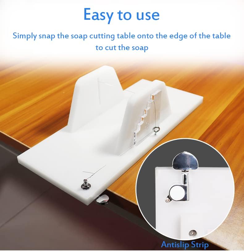 【سهلة الاستخدام والتنظيف】: السطح الأملس من السهل قطع قالب الصابون، فقط قم بتثبيت قطاعة الصابون على حافة الطاولة، وادفع قالب الصابون الكبير عبر السلك، ويمكن قصه إلى ألواح صابون صغيرة. ببساطة قم بغسله يدويًا بالماء الدافئ والصابون لسهولة التنظيف.