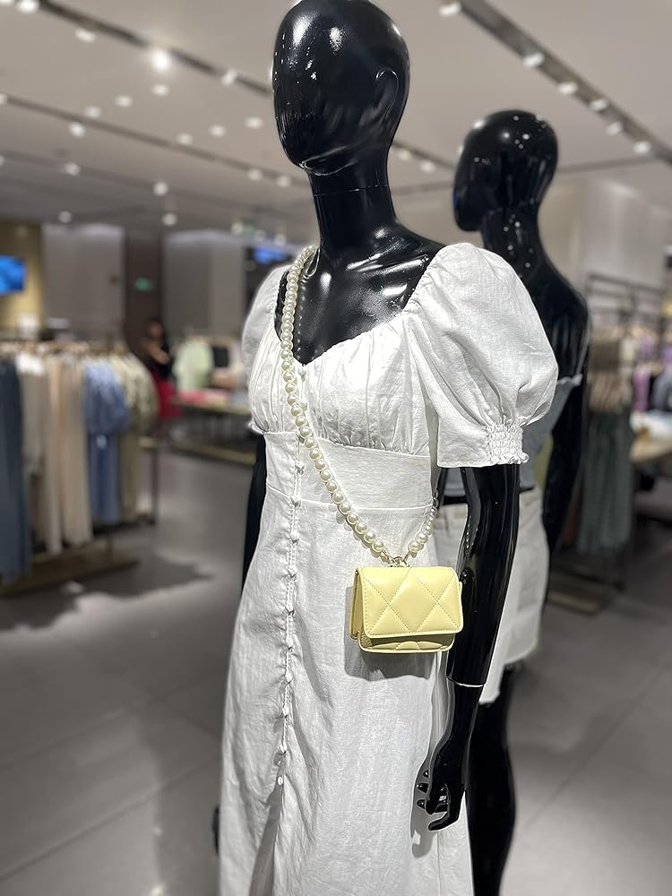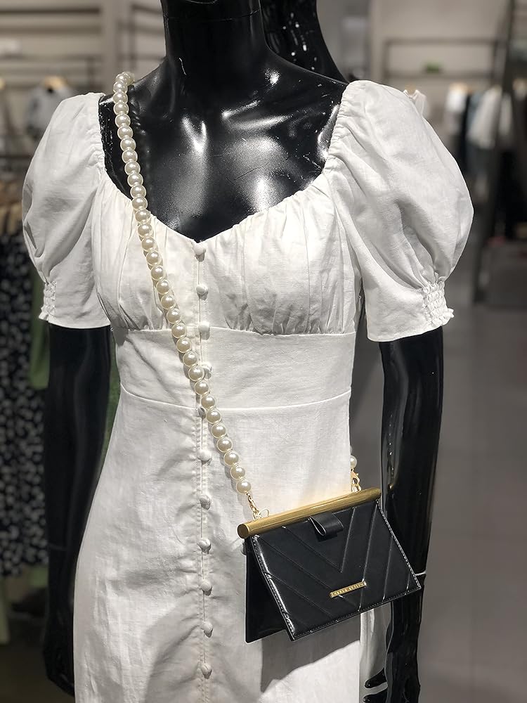 [عملية وقابلة للإزالة] تحتوي سلسلة خرز اللؤلؤ المقلد المزخرفة على مشبكين ذهبيين. يمكن ربطها وإزالتها بسهولة ولكن متينة من كلا الحلقتين الخارجيتين على كل جانب من جوانب المحفظة.