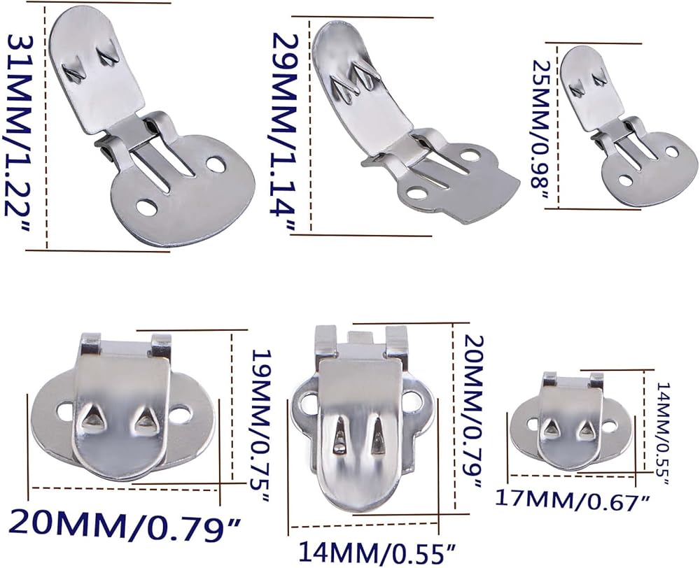 • 3 مقاسات متاحة: تحتوي مشابك الأحذية الفارغة هذه على 3 مقاسات، مقاس كبير تقريبًا. 31 × 20 مم، مقاس متوسط ​​تقريبًا. 29 × 14 مم، مقاس صغير تقريبًا. 25 × 17 ملم، بأحجام مختلفة لتتمكن من استخدامها.