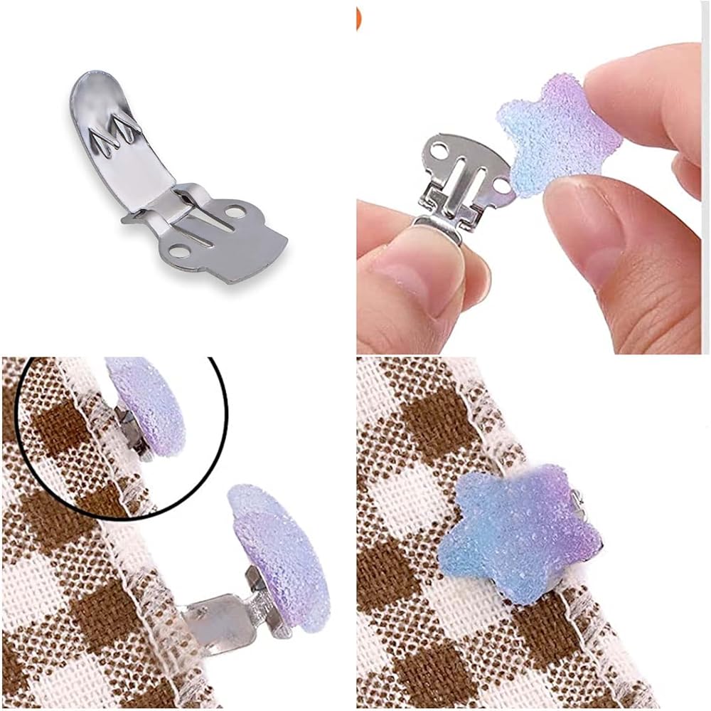 يمكنك إضافة الأزرار والخرز والزهور والريش والأقواس وكرات الفراء وما إلى ذلك إلى هذه المشابك الفارغة حتى تتمكن من تزيين عناصر مثل الأحذية والقبعات والملابس والنعال والكعب العالي وغير ذلك الكثير.