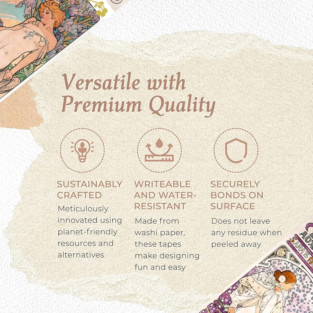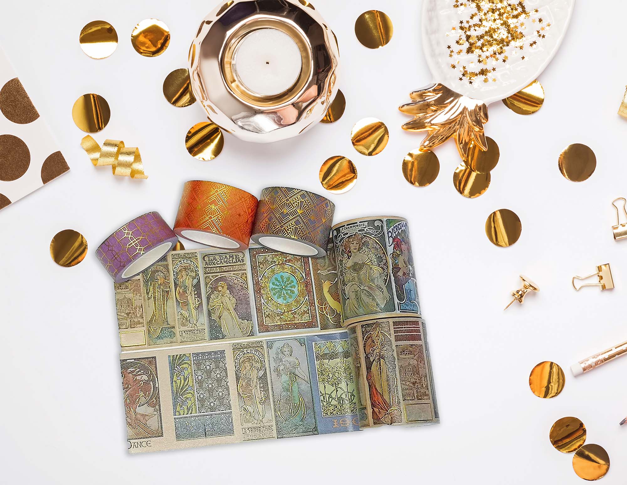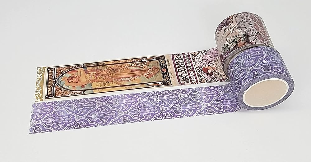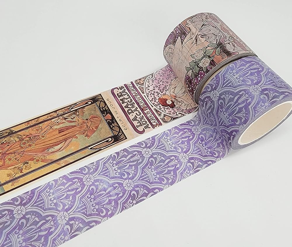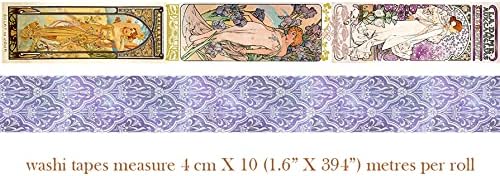 مجموعة من 2 شريط واشي بنمط فن الآرت نوفو من الفونس موتشا بكرات طويلة للغاية بطول 10 متر/390 انش!