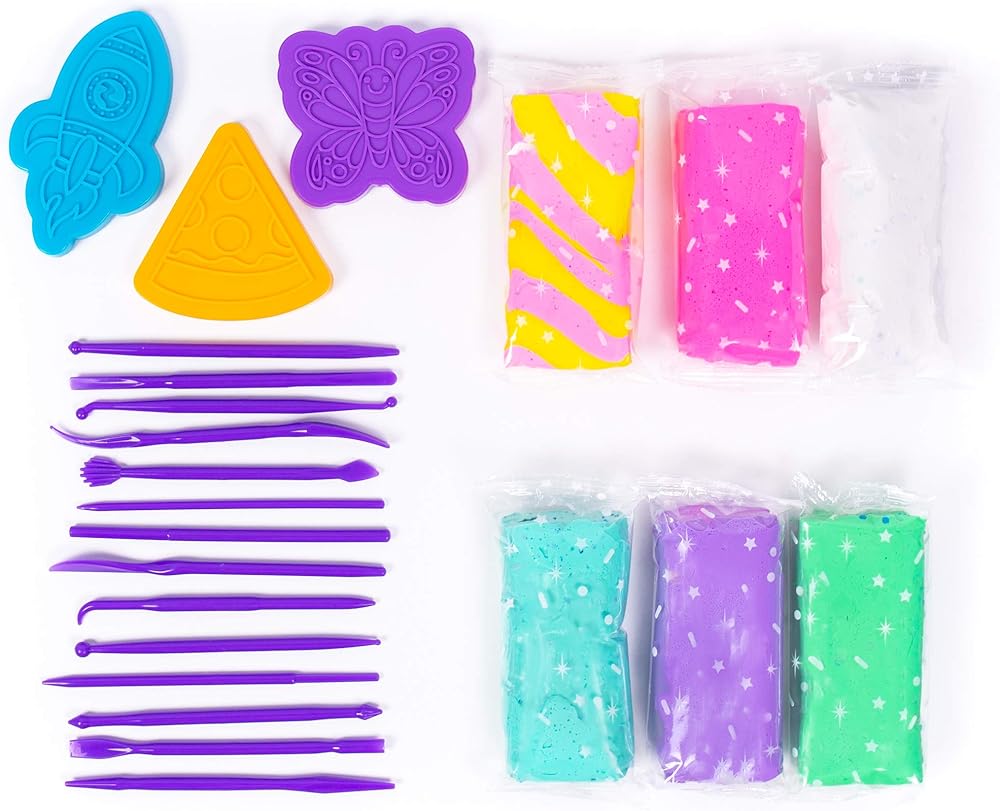 INCLUDES 6 OZ. OF TEXTURED, AIR-DRY CLAY: With 6 different fun-colored clays and crunchy, sparkly add-ins like glitter and mini foam balls — get ready to experience ready-made texture without the extra prep!