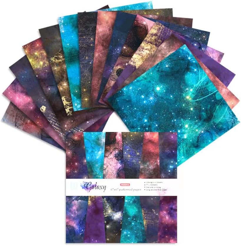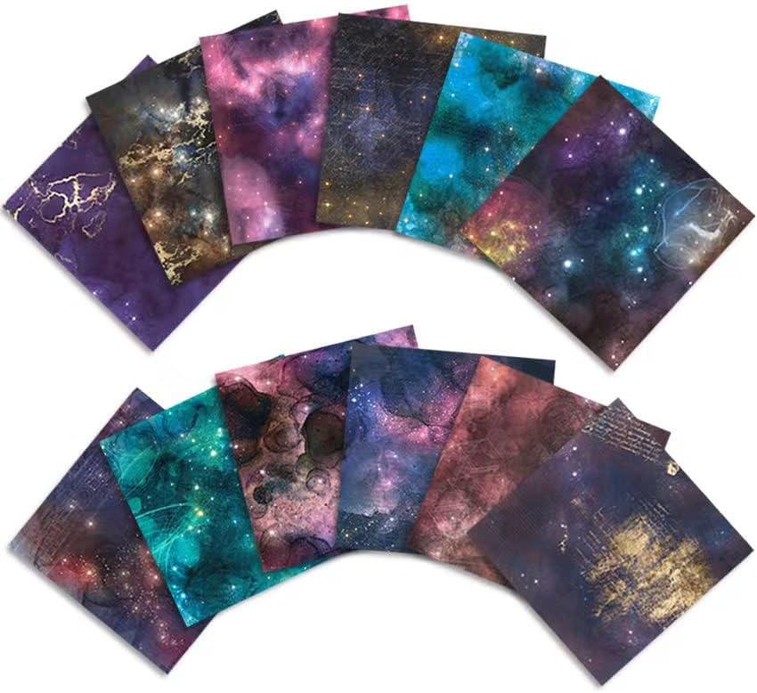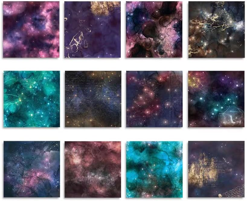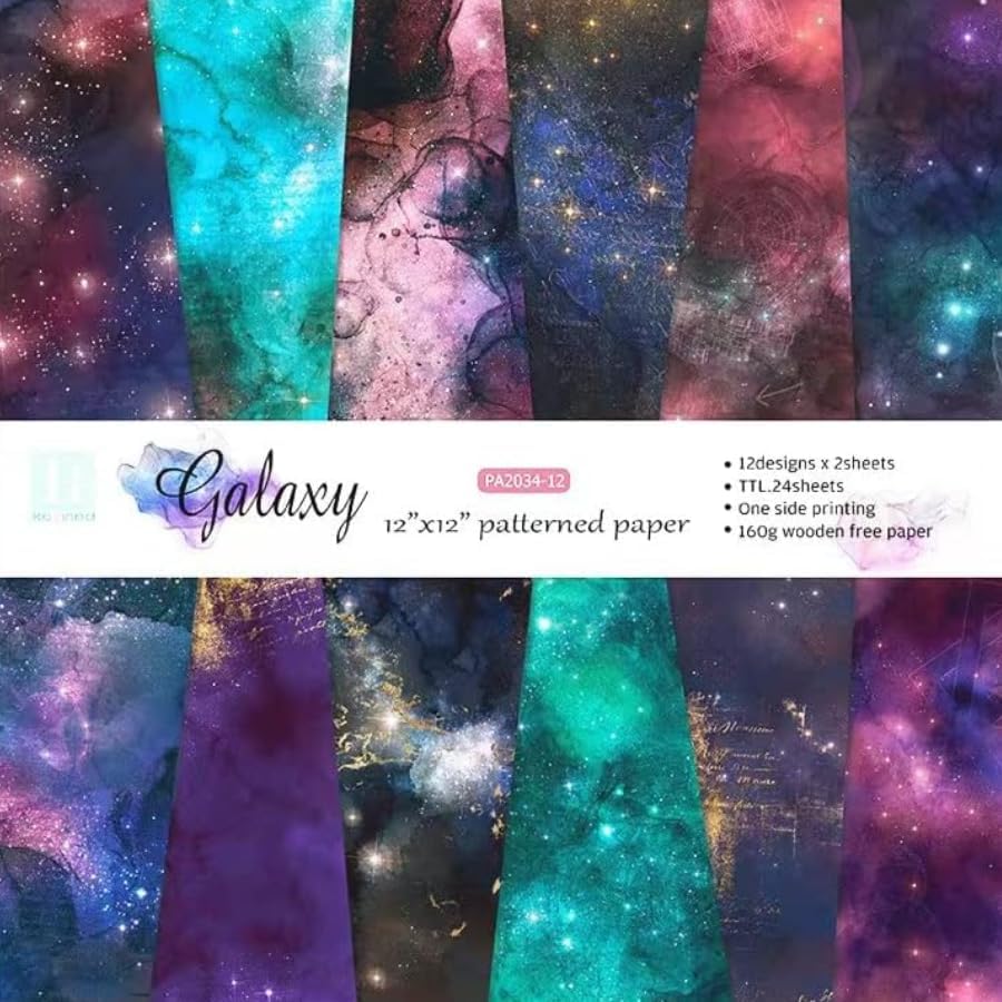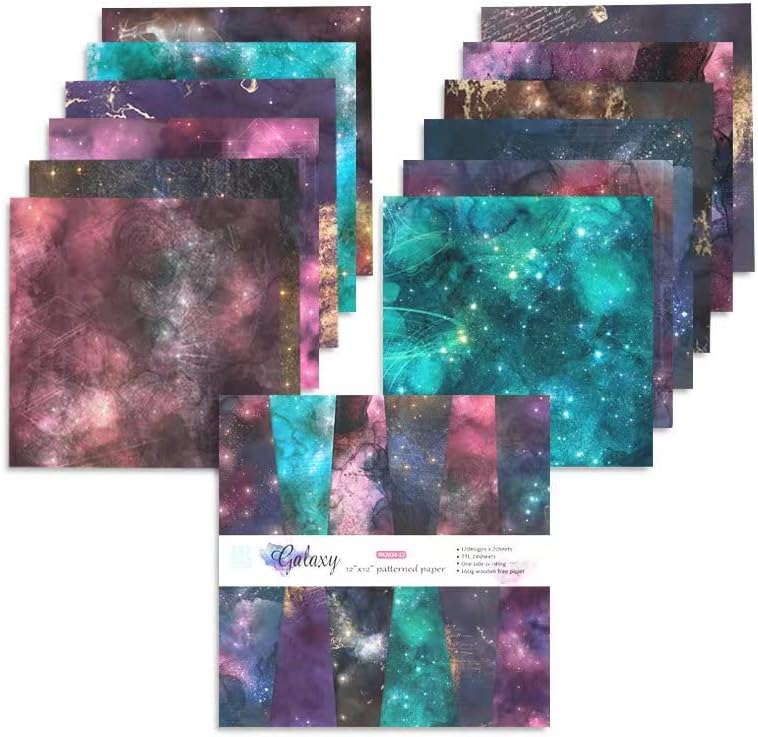 مجموعة قيمة: احصل على عبوة من 24 ورقة من الورق المنقوش الجميل "Galaxy" التي ترمز إلى الأمل والسعادة والحلاوة. كل ورقة بمقاس كبير 30 × 30 سم/12 × 12 انش، مع 12 تصميمًا مختلفًا و2 ورقة من كل نمط