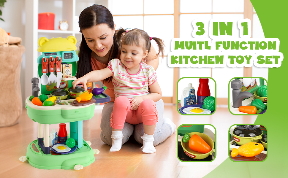 Educational Kitchen Toy : With multi-functional kids kitchen set, kids can have an interesting role-play game, being a great chef. Not only is your child able to create their own fun with this play set, but they are also able to build on their hand-eye coordination and creativity and imaginations.