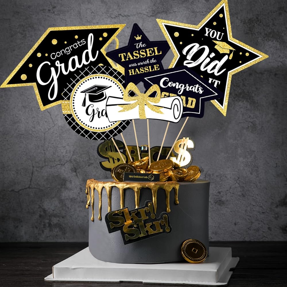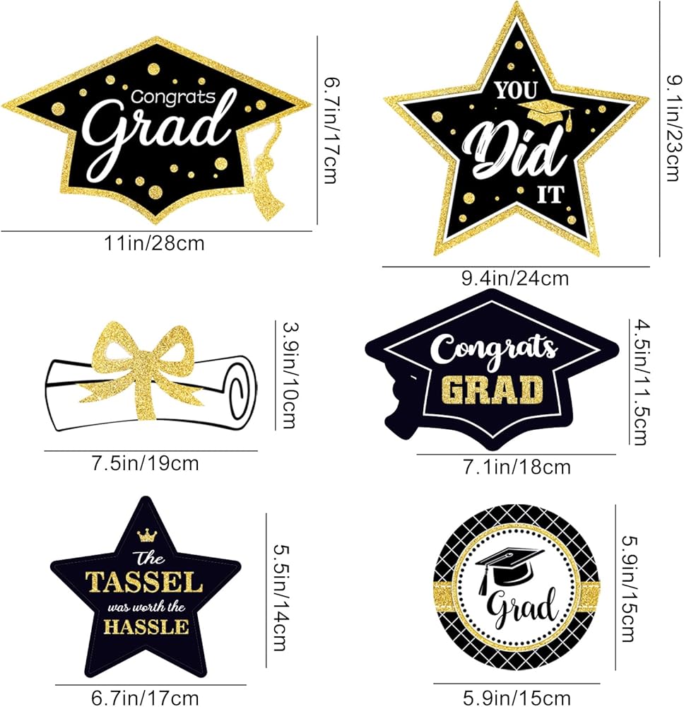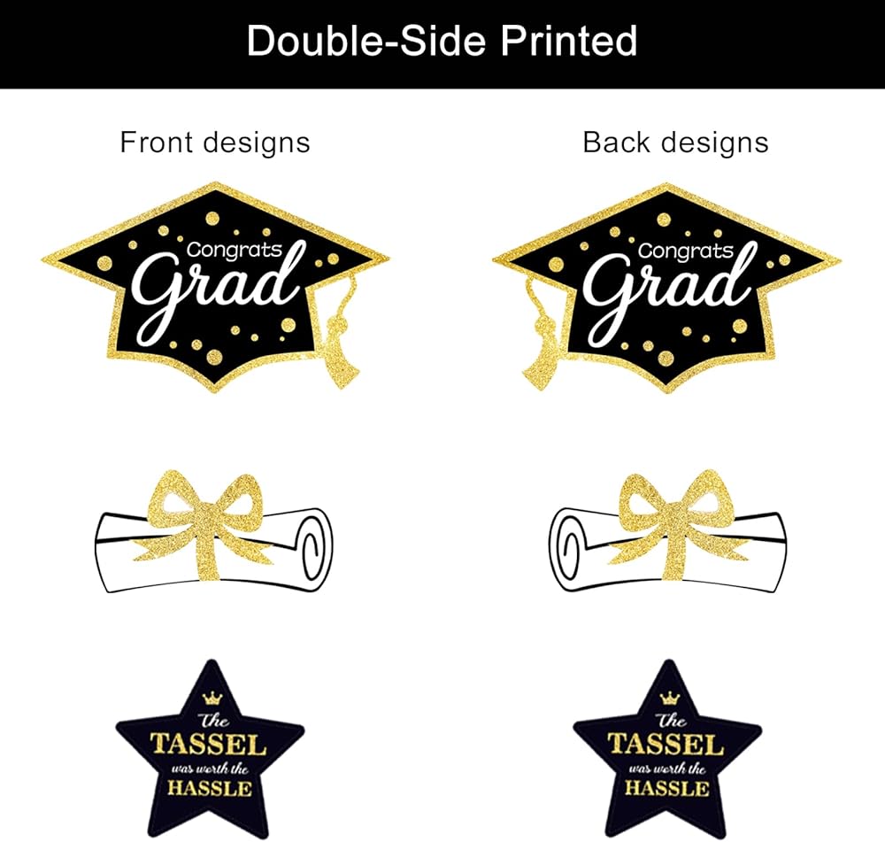 【طباعة مزدوجة】العصي المركزية لحفلات التخرج عبارة عن بطاقات مطبوعة على الوجهين في 6 أشكال تخرج مختلفة. لوازم حفلات التخرج الرائعة باللون الكستنائي والذهبي!