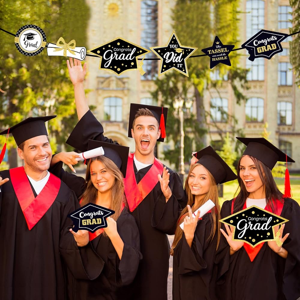 【تستخدم على نطاق واسع】مجموعة تزيين طاولة حفلات التخرج مثالية لحفلات التخرج المارونية، يمكنك استخدامها كديكور مركزي للطاولة، أو دعامة لكشكشة صور التخرج، أو ديكورات للحوائط، أو ملحقات فوتوغرافية، أو لوازم هدايا لحفلات التخرج، أو أفكار لحفلات التخرج للمدرسة الثانوية أو كلية.