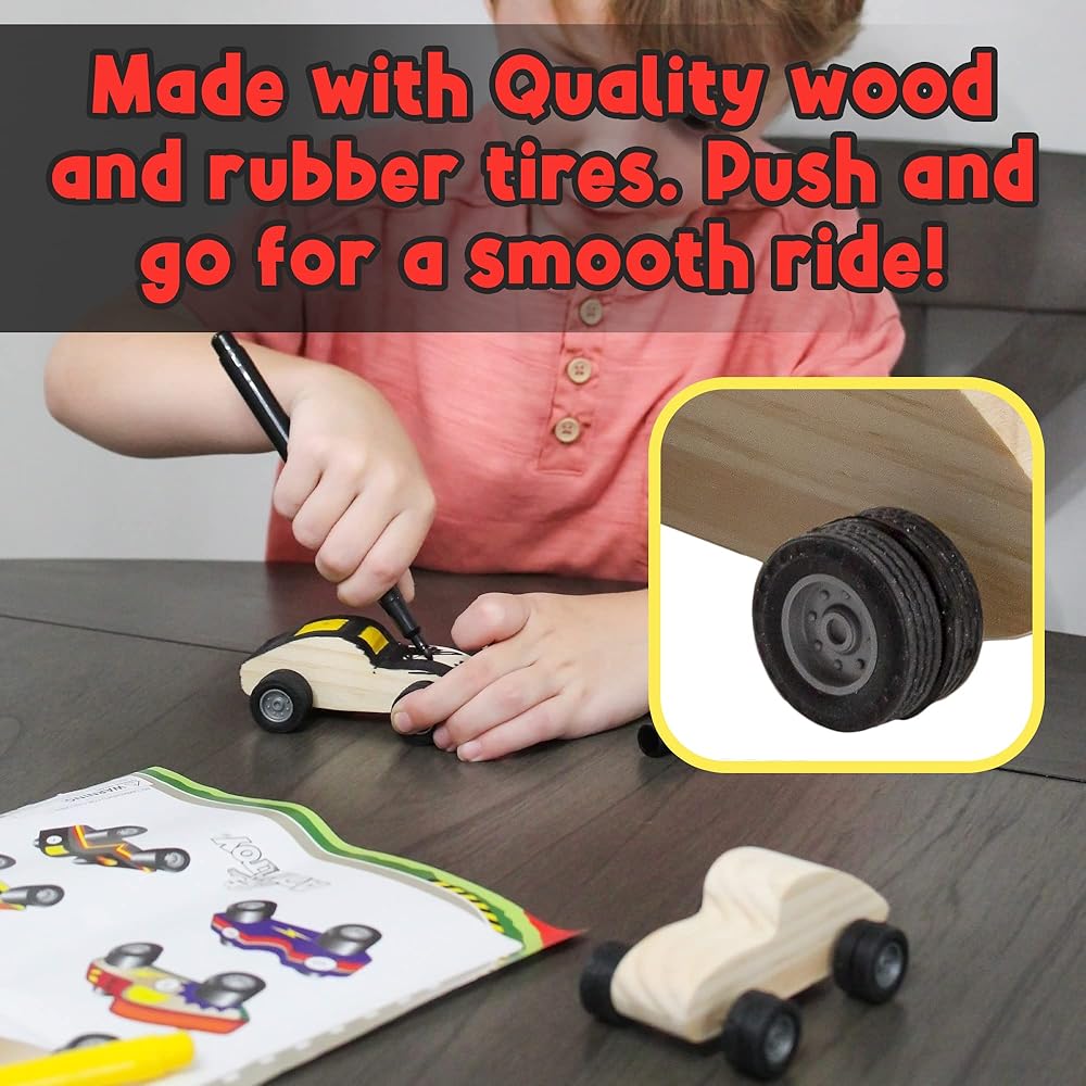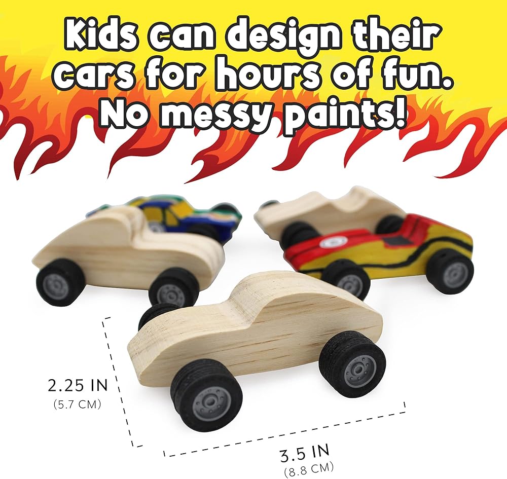 • حجم صغير: كل سيارة فارغة 3.5 × 2.25 × 1 انش؛ المادة: خشب الصنوبر