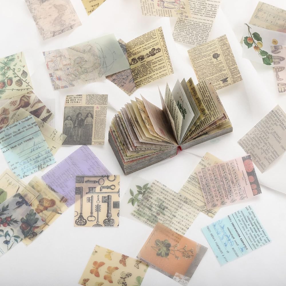 1167 قطعة ورقة سجل قصاصات عتيقة ، ورقة سجل قصاصات قاموس صغير ورقة ديكوباج الحرفية مع شريط لاصق للوازم مجلة Bullet Junk Journal